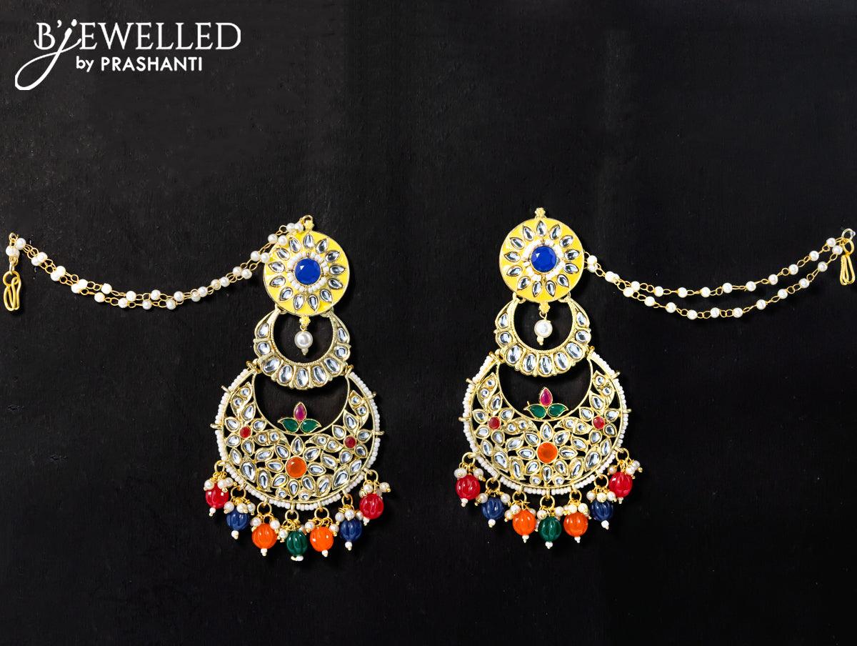 Dangler chandbali earrings multicolour with hangings and pearl maatal