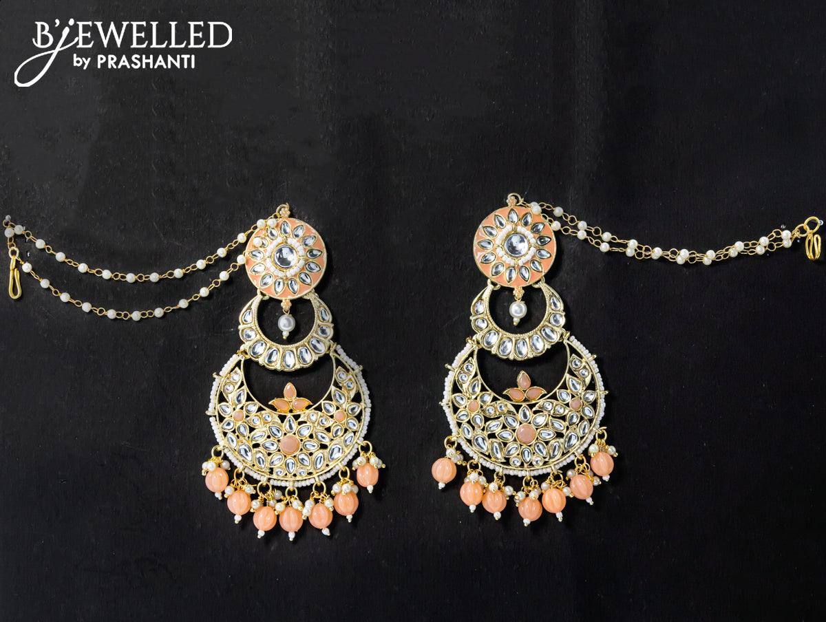 Dangler chandbali earrings peach with hangings and pearl maatal