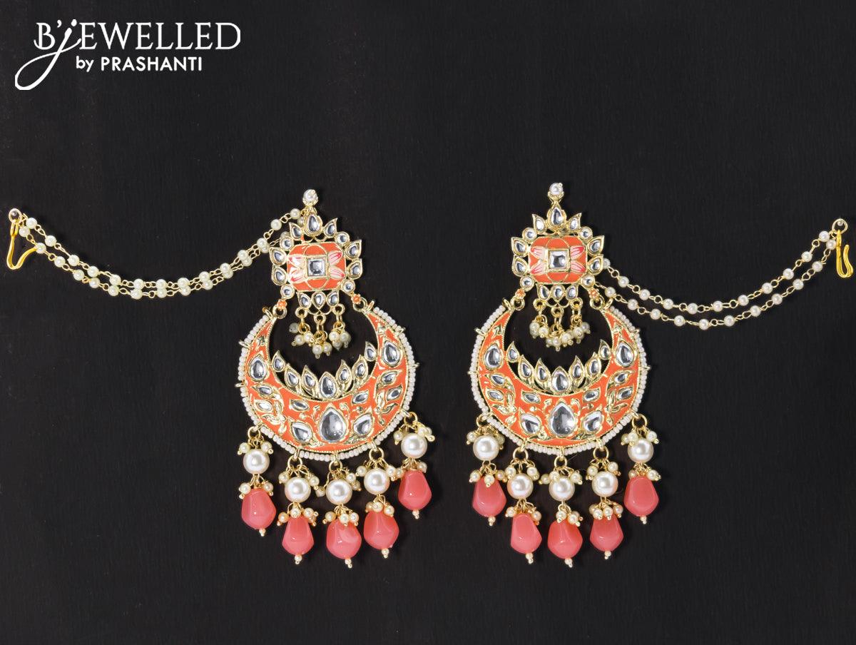 Dangler chandbali earrings peach with hangings and pearl maatal