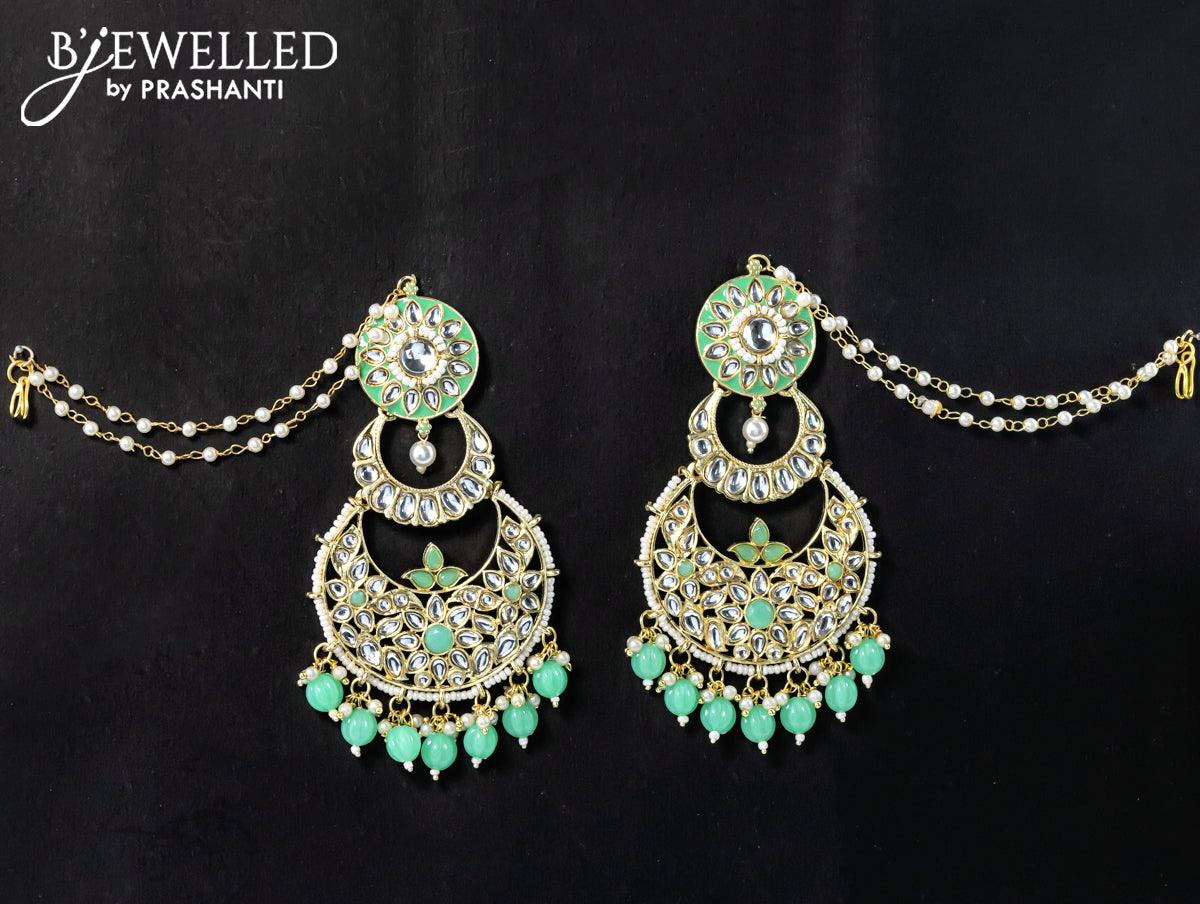 Dangler chandbali earrings teal green with hangings and pearl maatal