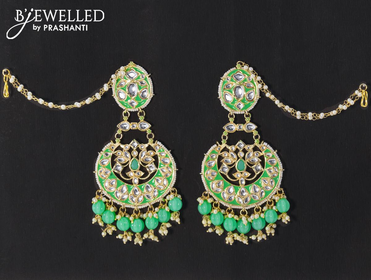 Dangler chandbali earrings teal green with hangings and pearl maatal