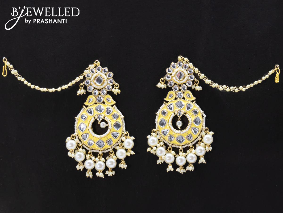 Dangler earrings cream with pearl hangings and pearl maatal