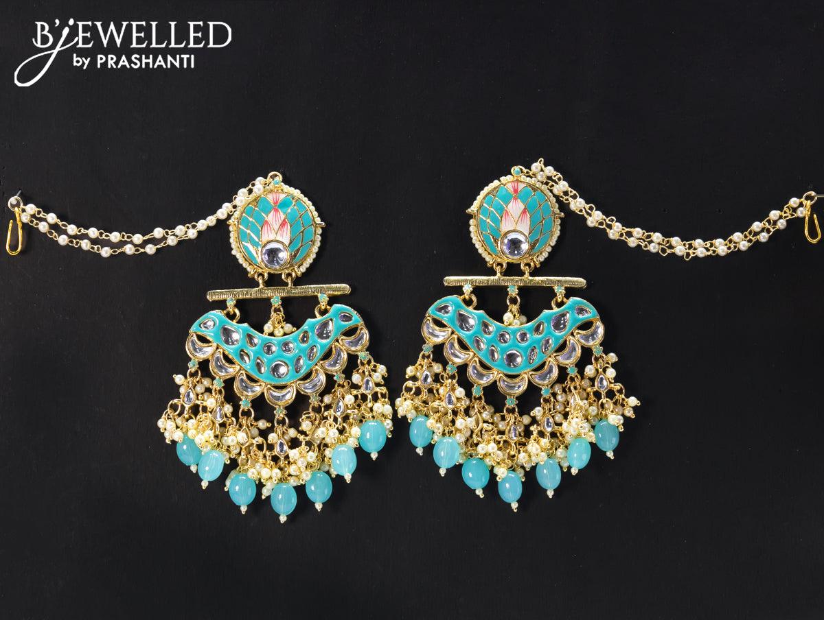 Dangler earrings light blue with hangings and pearl maatal