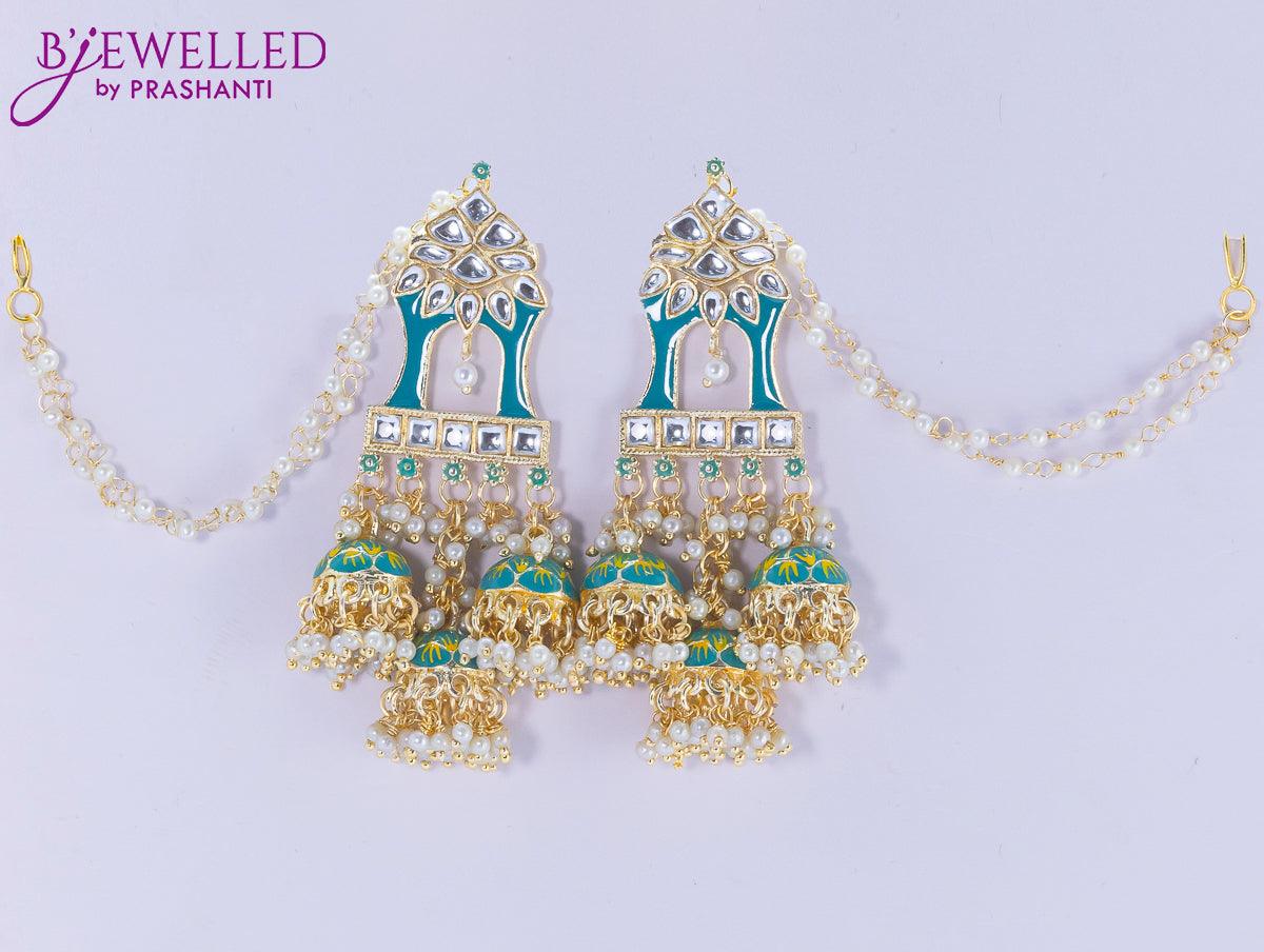 Dangler earrings teal blue with hangings and pearl maatal