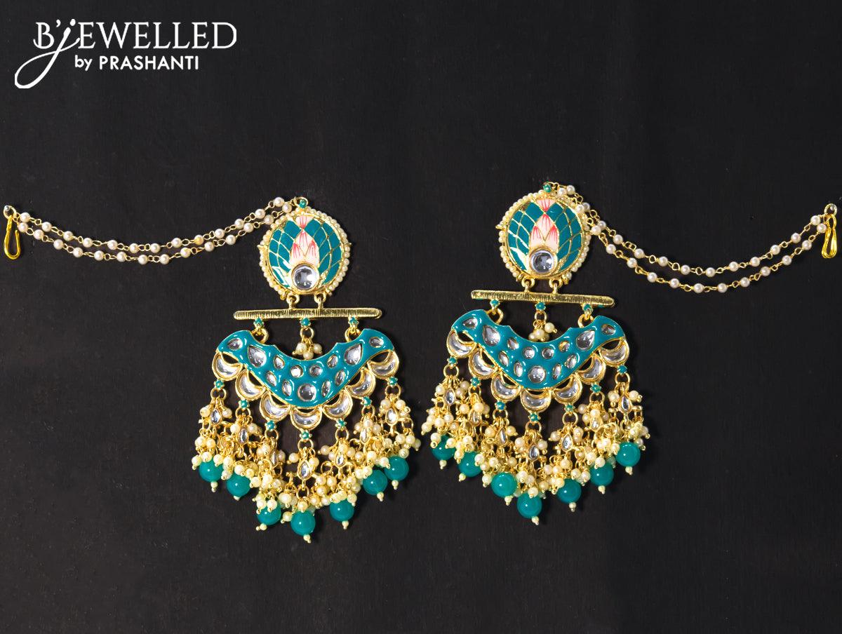 Dangler earrings teal blue with hangings and pearl maatal