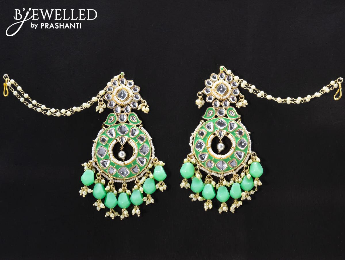 Dangler earrings teal green with hangings and pearl maatal