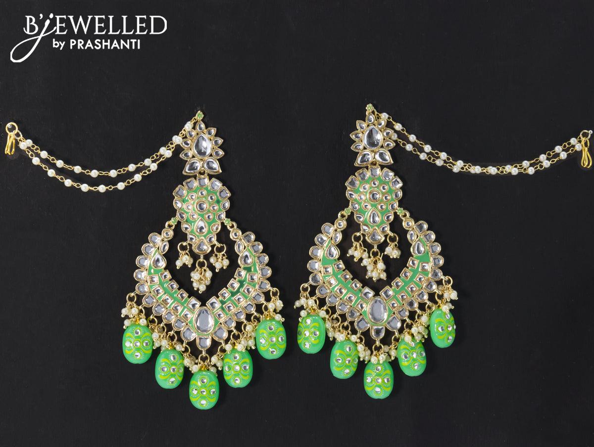 Dangler earrings teal green with hangings and pearl maatal