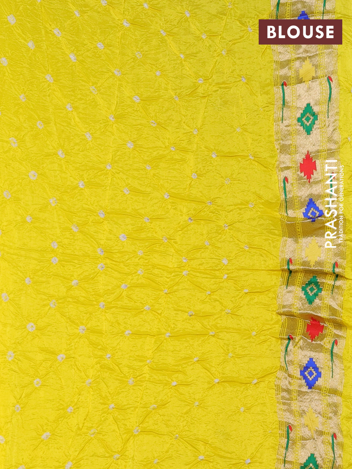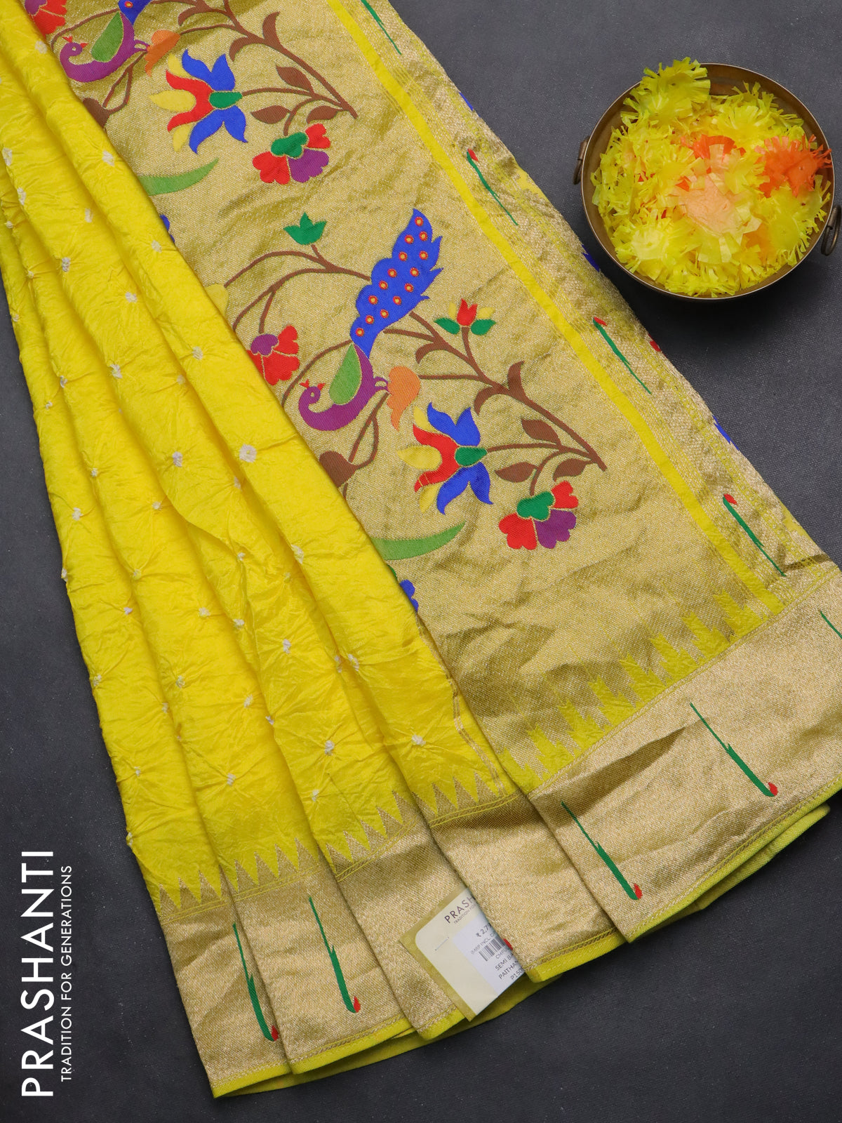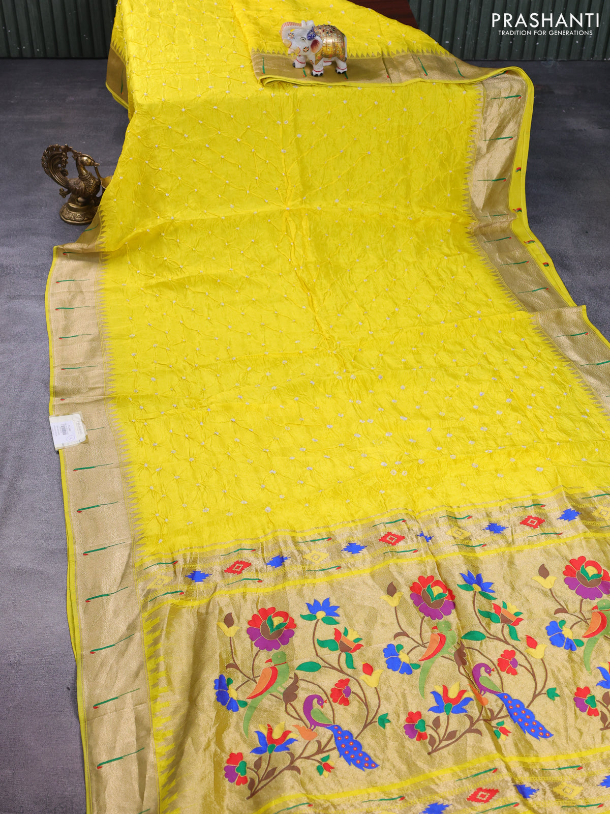 Dola silk bandhini saree yellow with allover bandhini prints and muniya butta border & Paithani pallu