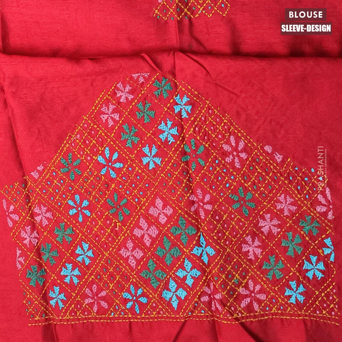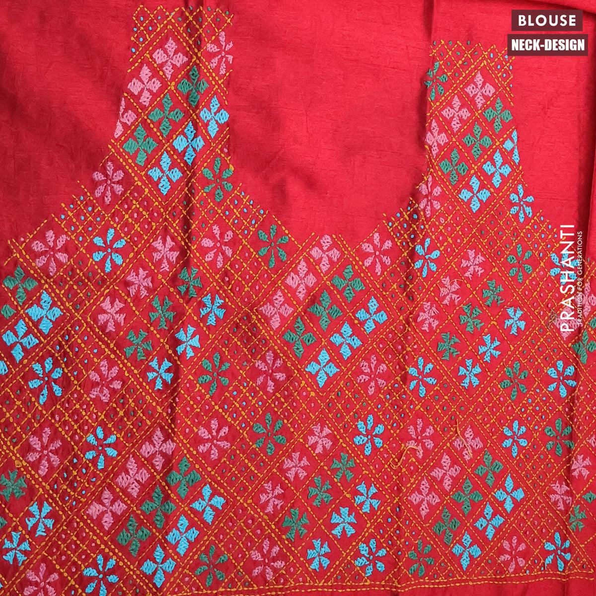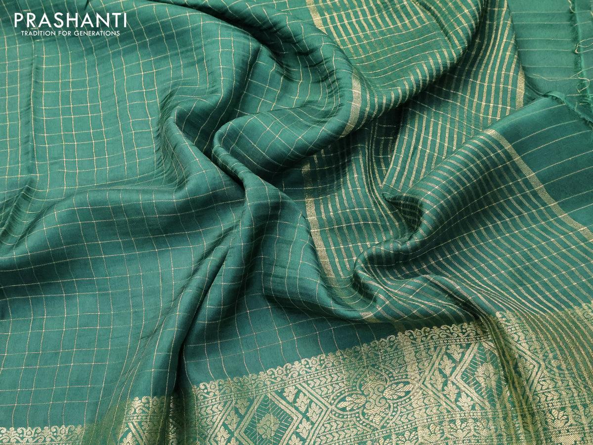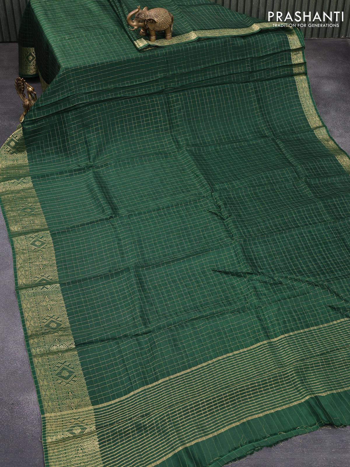 Dola silk saree green and red with zari checked pattern and zari woven border with embroidery work blouse