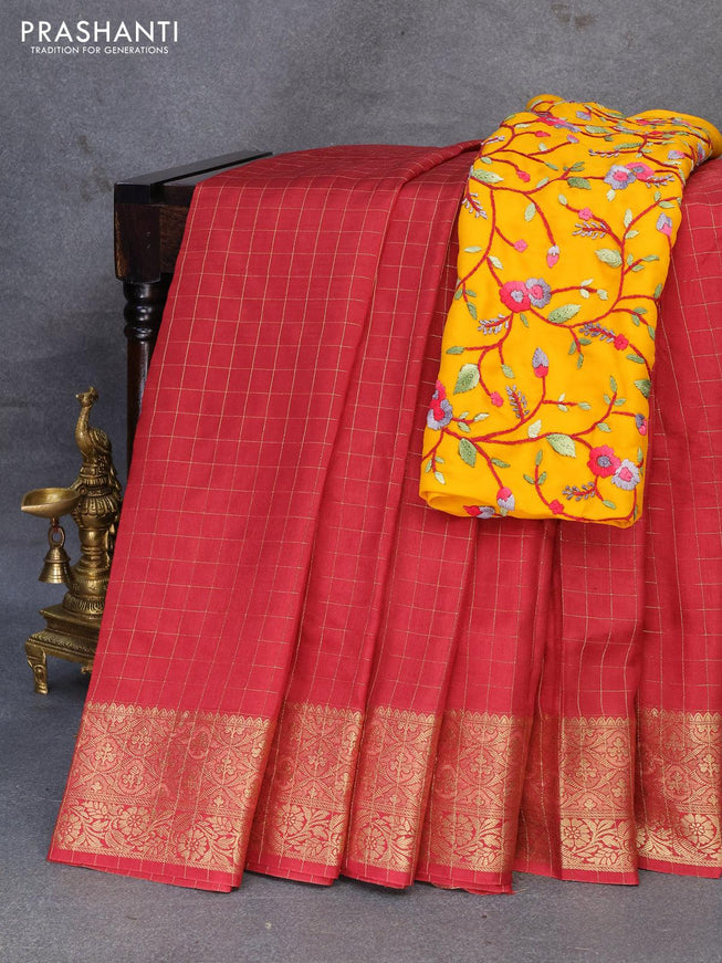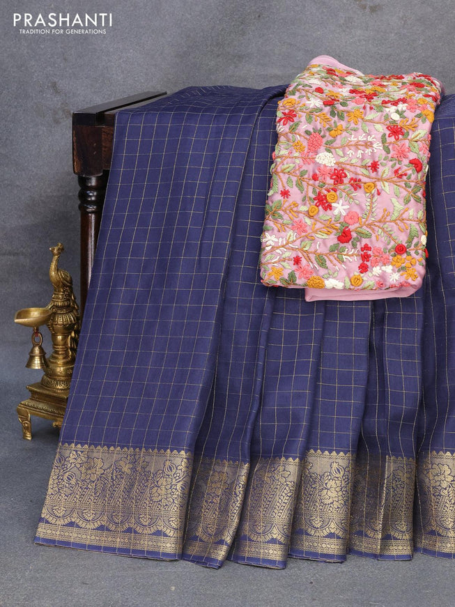 Dola silk saree maroon and pastel pink with zari checked pattern and zari woven border with embroidery work blouse