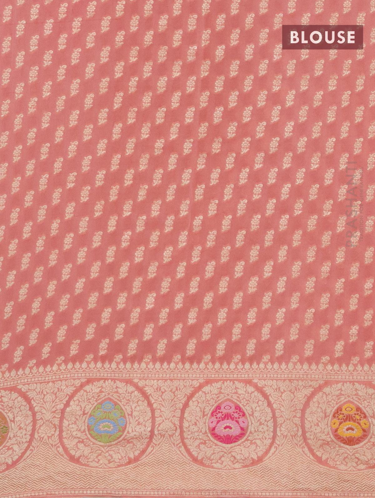 Material : Banarasi Georgette SILK MARK CERTIFIED Blouse : Blouse Attached Length of saree : 6.2 mts ( 5.5 mts... Read more