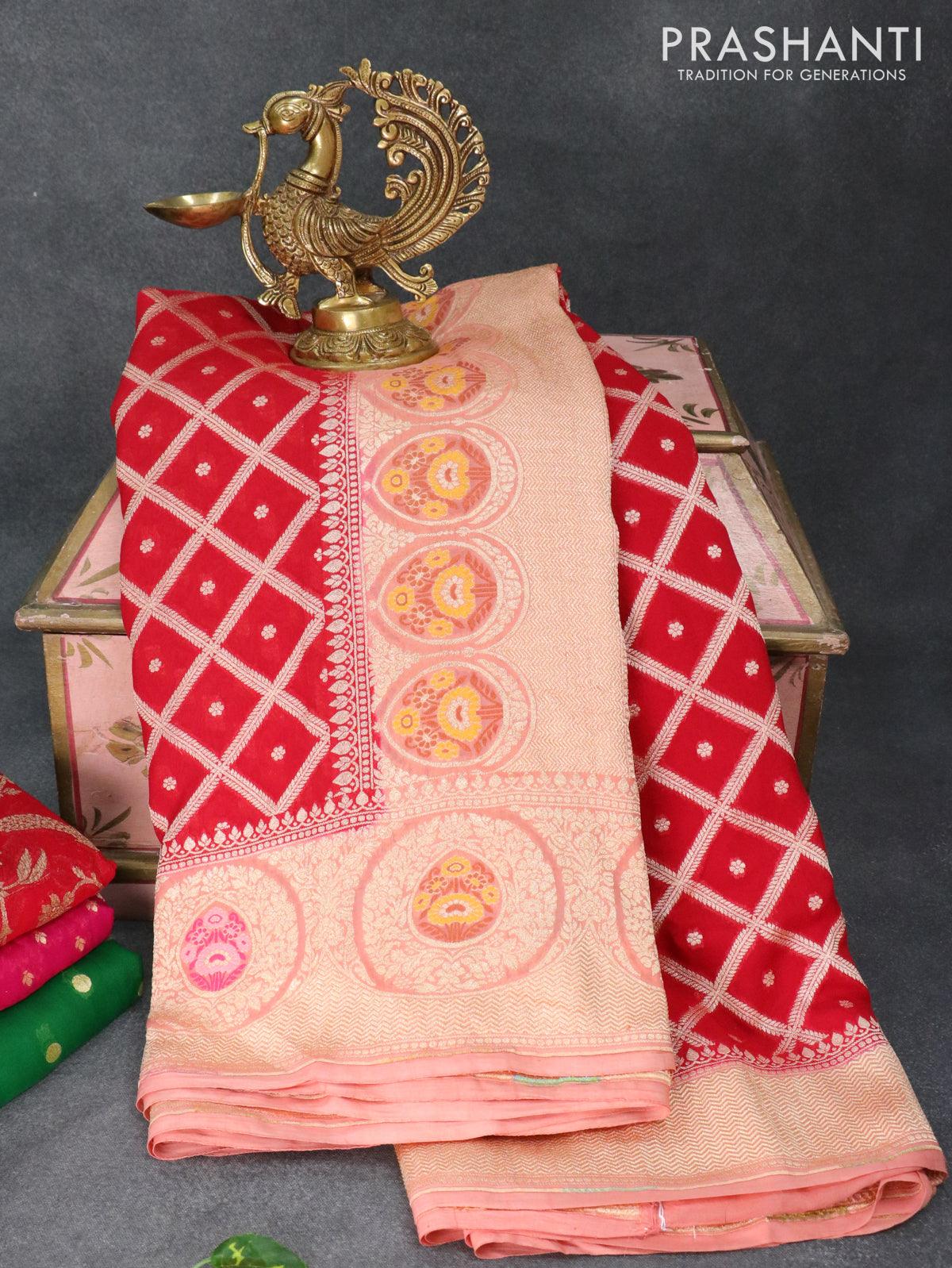 Exclusive banarasi paithani georgette saree red with allover zari weaves and zari woven paithani border