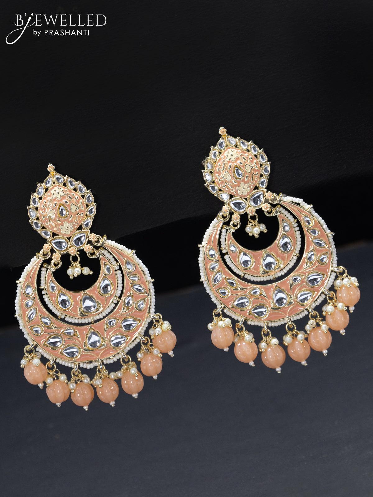 Fashion dangler chandbali peach minakari earrings with pearl hangings