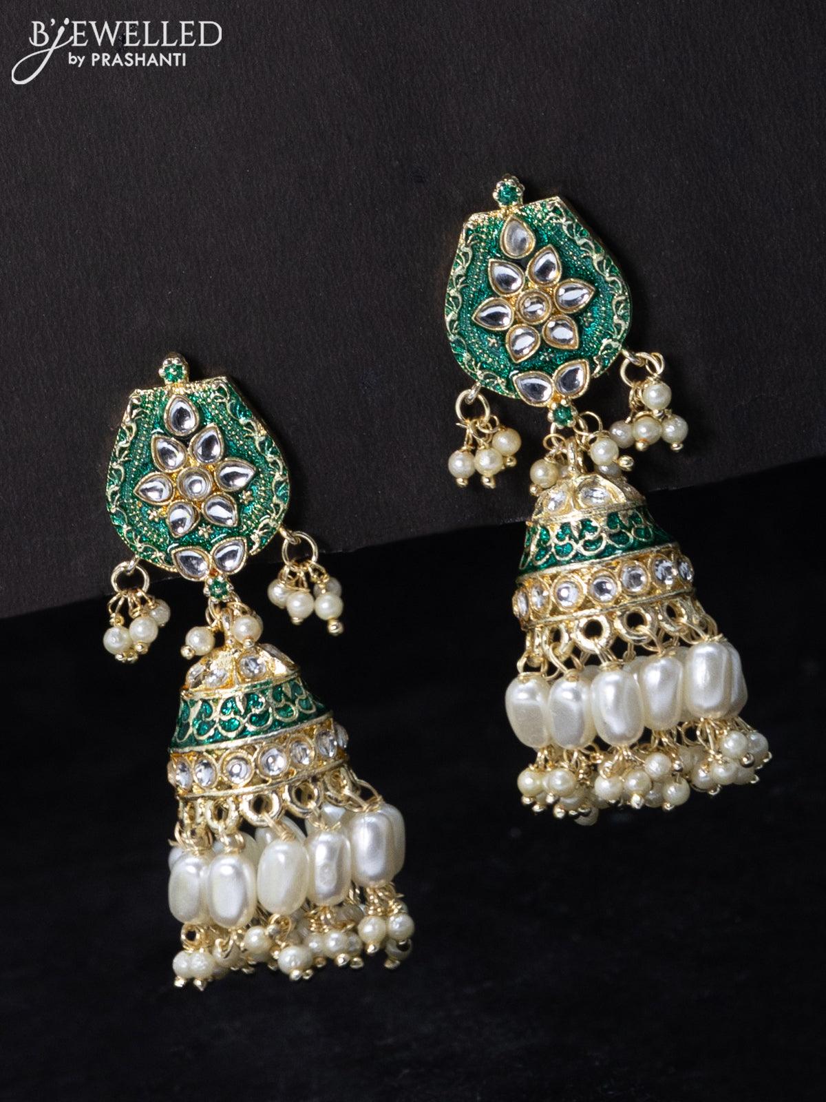 Fashion dangler dark green jhumka minakari work with pearl hangings