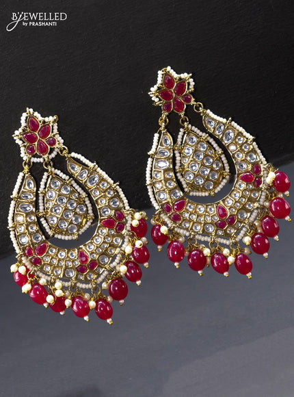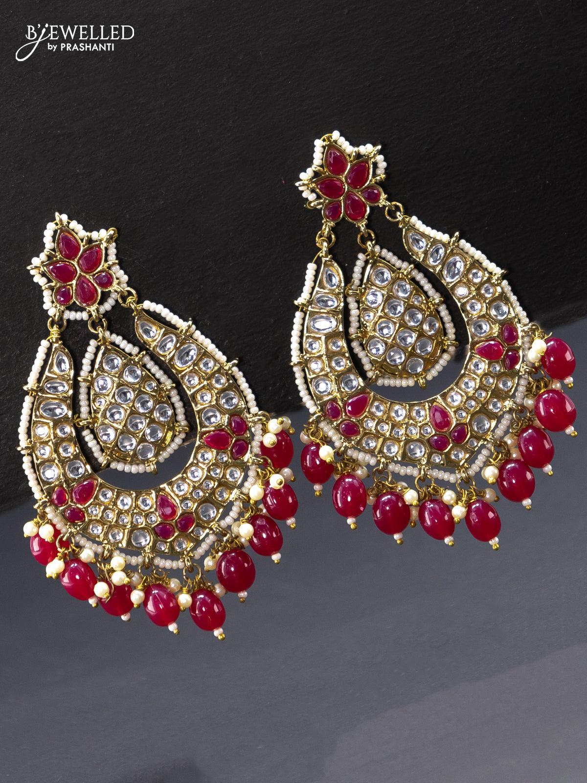 Fashion dangler earring dark pink and kundan stone with beads hangings