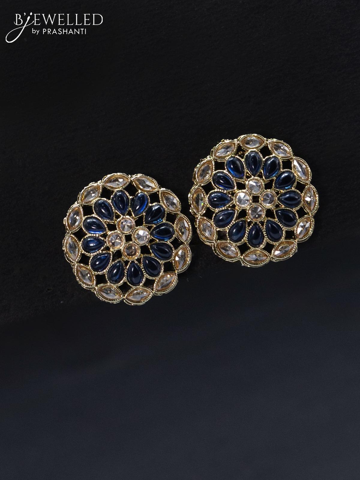 Fashion dangler floral design earrings with cz and sapphir stone