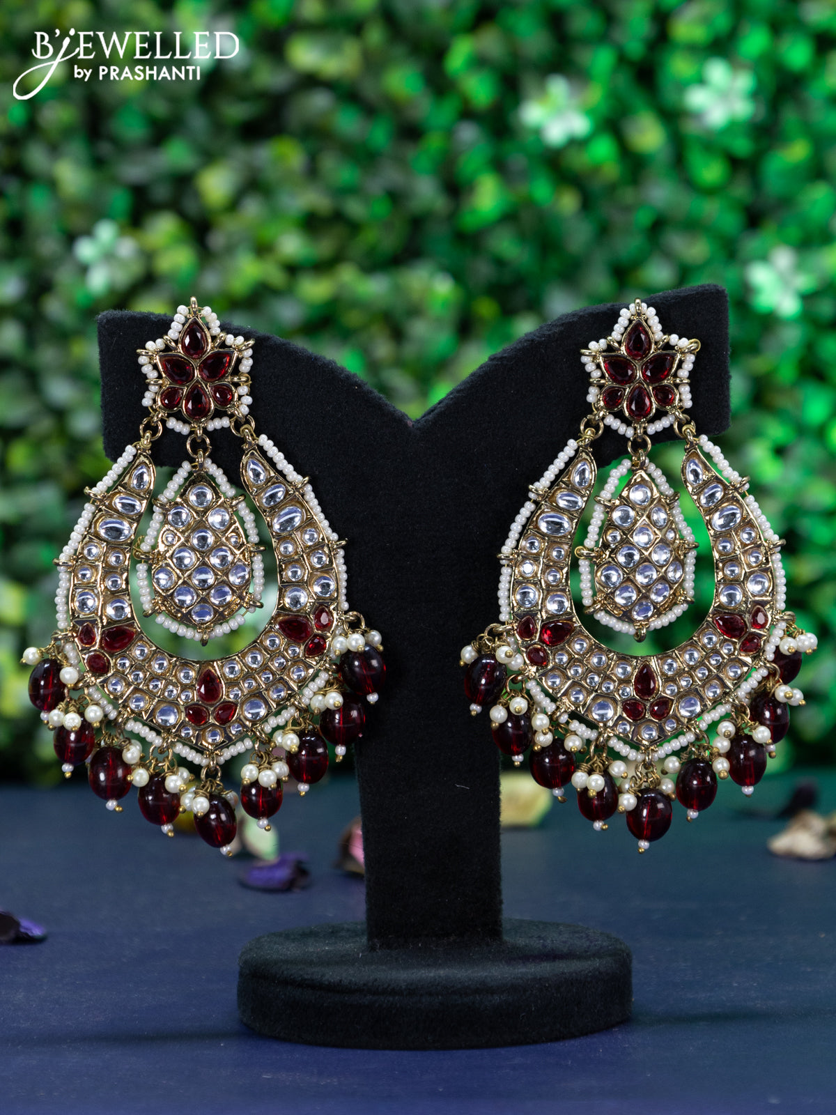 Fashion dangler maroon earrings with kundan stones and beads hangings