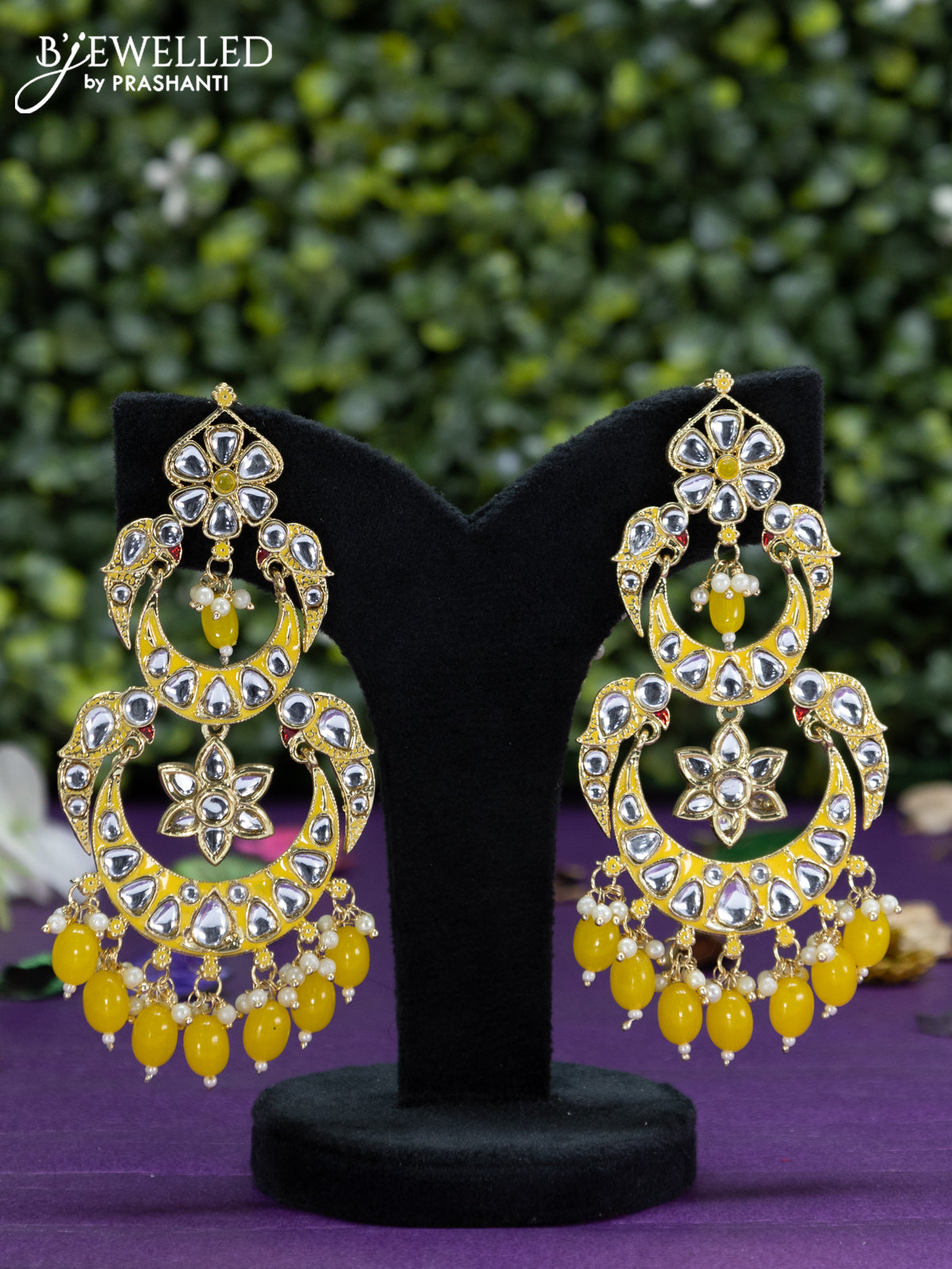 Fashion dangler yellow earrings with kundan stones and beads hangings