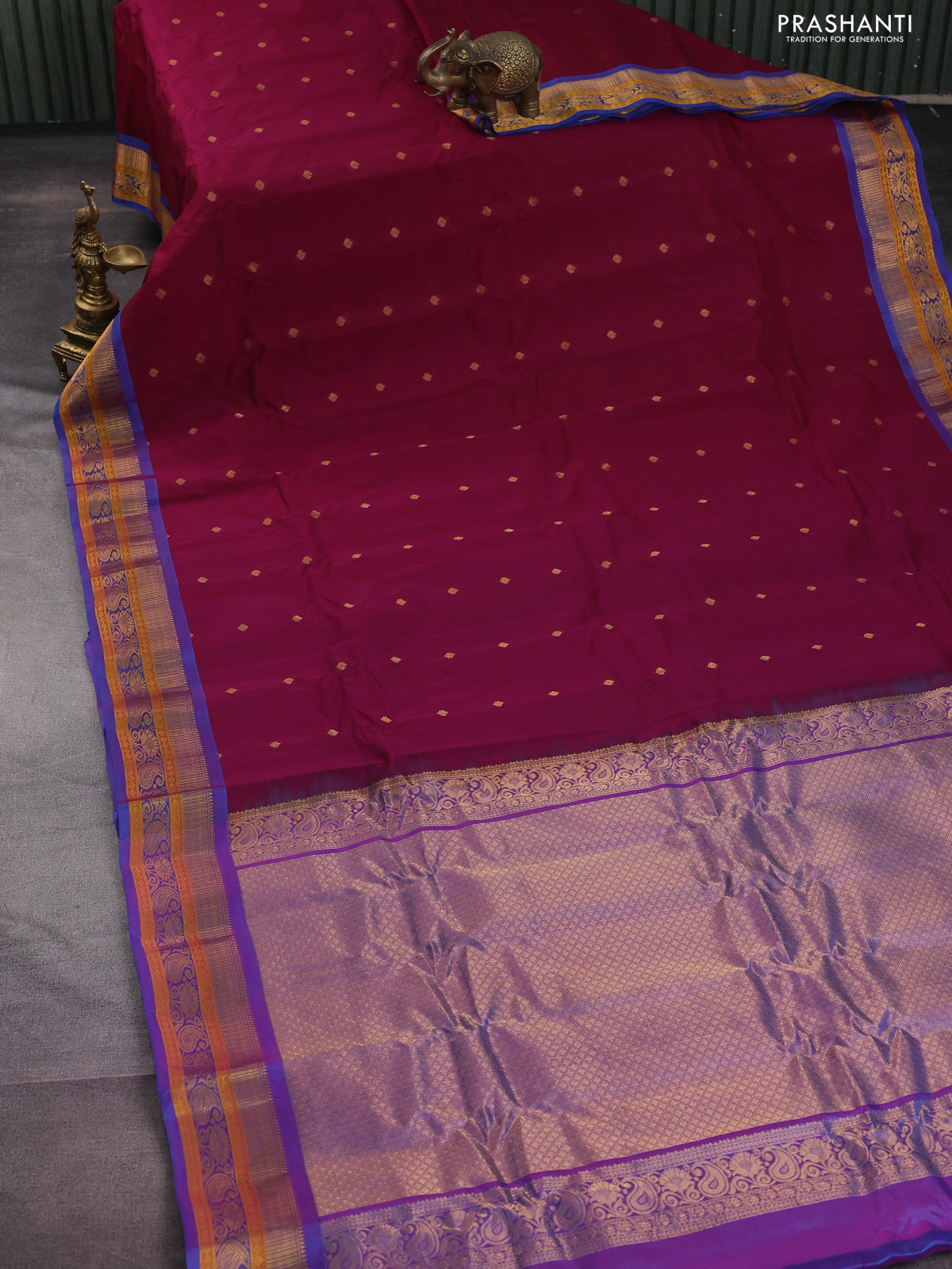 Gadwal silk cotton saree dark magenta pink and dual shade of blue with zari woven buttas and zari woven border