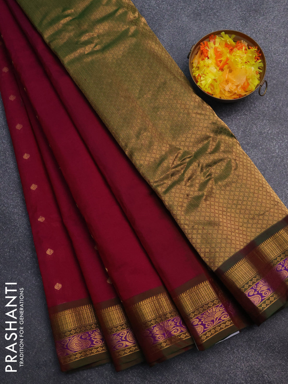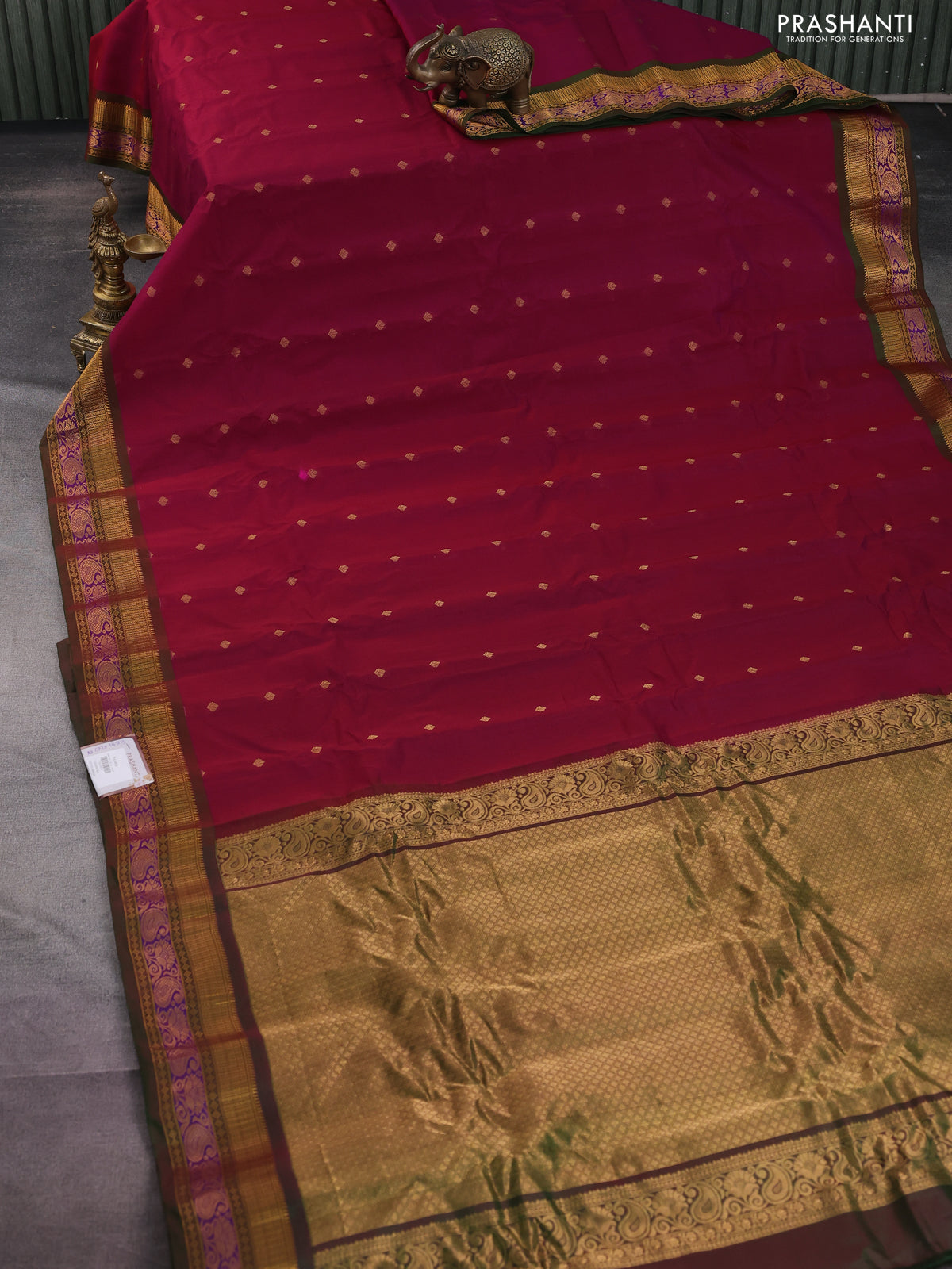 Gadwal silk cotton saree dark magenta pink and dual shade of green with zari woven buttas and zari woven border