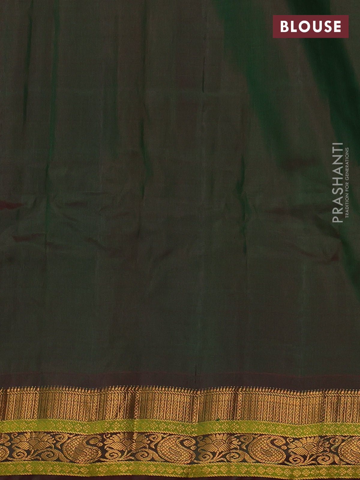 Gadwal silk cotton saree green and dual shade of maroon with zari woven buttas and zari woven border