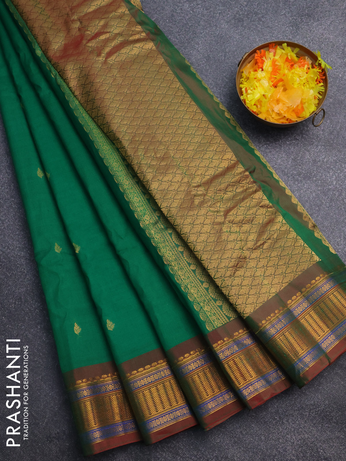 Gadwal silk cotton saree green and dual shade of maroon with zari woven buttas and zari woven border