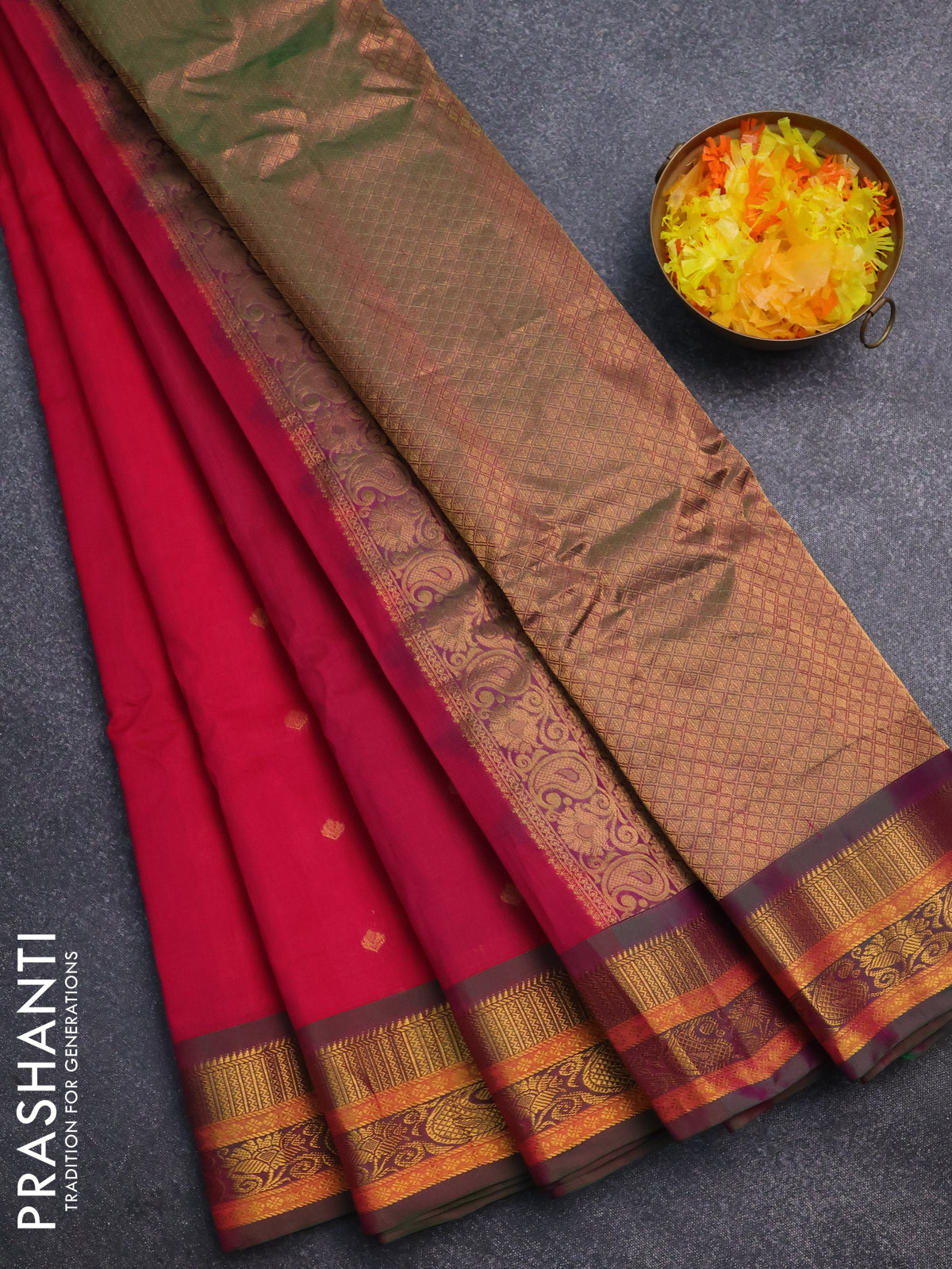Gadwal silk cotton saree magenta pink and dual shade of green with zari woven buttas and zari woven border