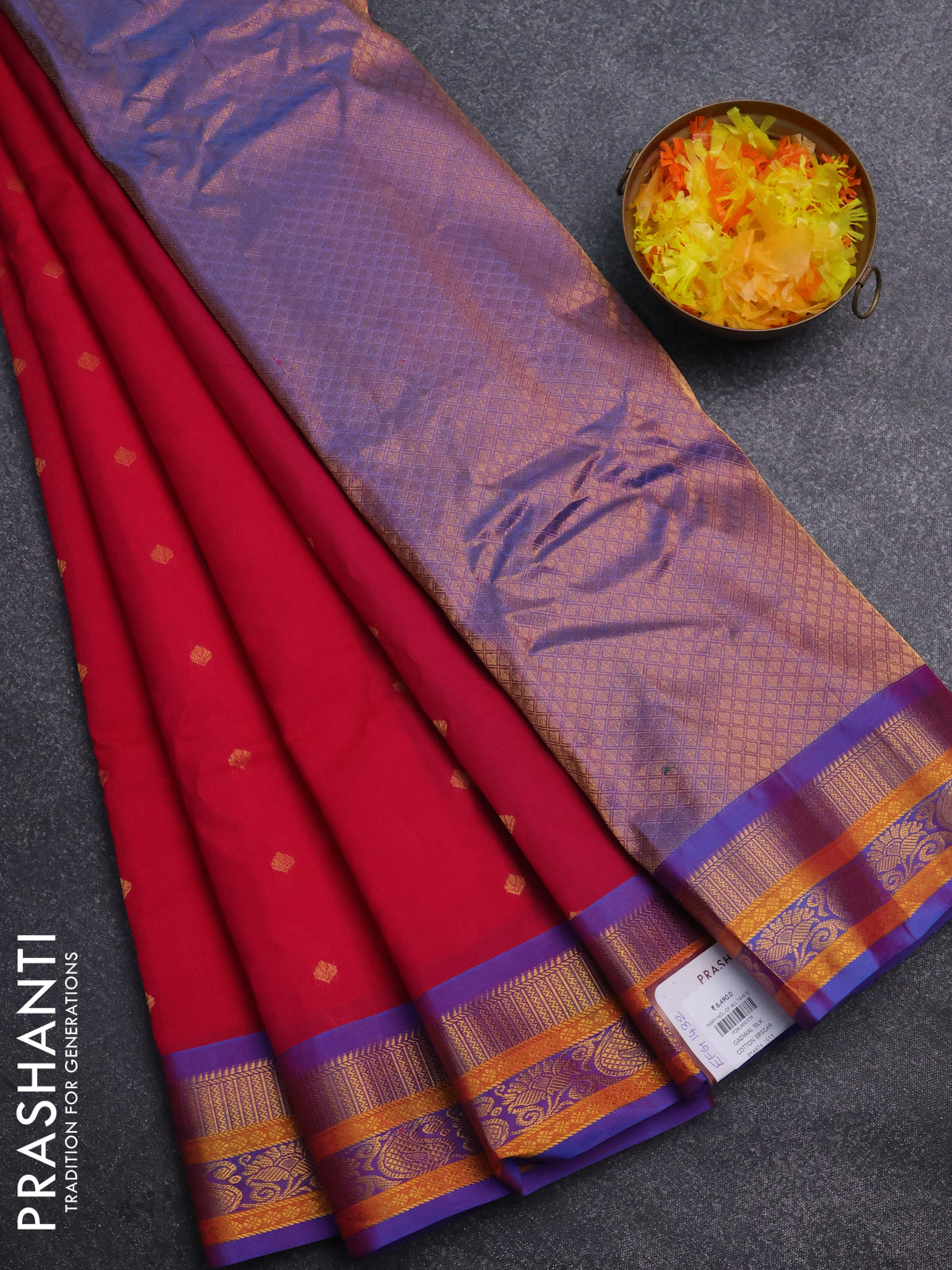 Gadwal silk cotton saree pink and dual shade of blue with zari woven buttas and zari woven border