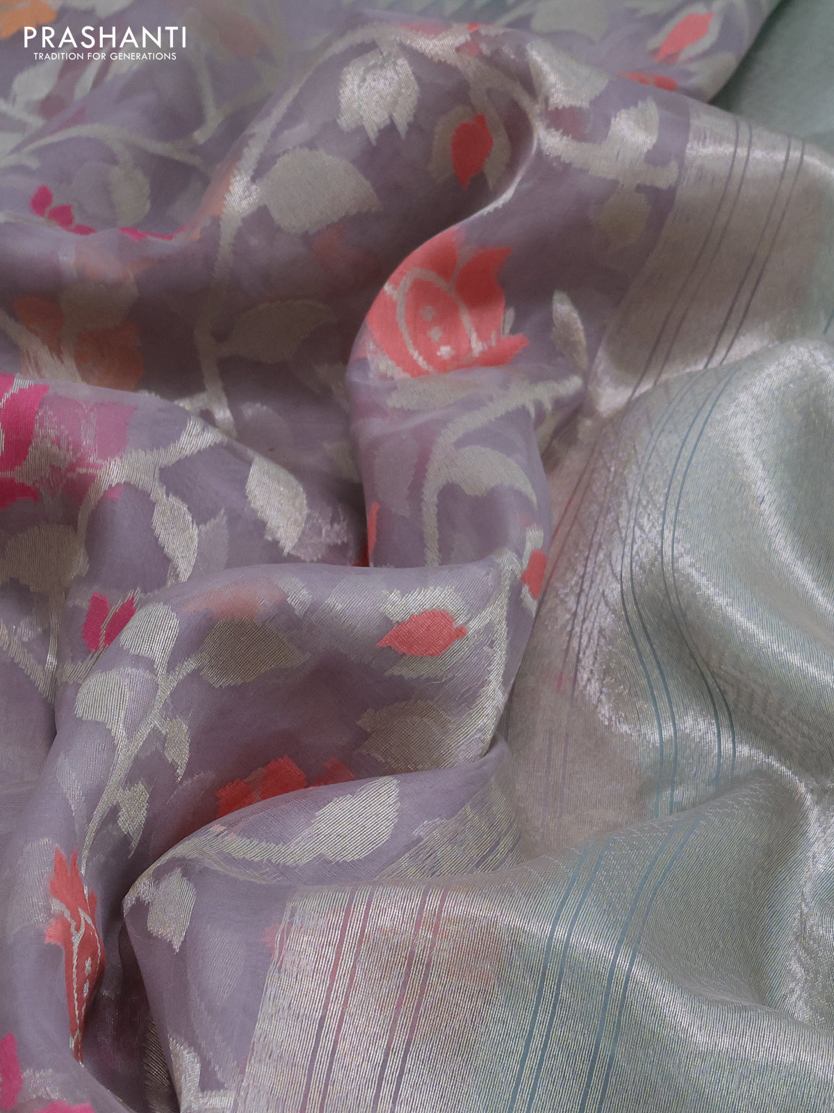 Pure Banarasi Kora Silk sarees featuring a sheer texture and graceful sheen, offering a perfect balance of timeless Banarasi artistry and contemporary elegance. Curated by Prashanti for effortless grace and refined style.