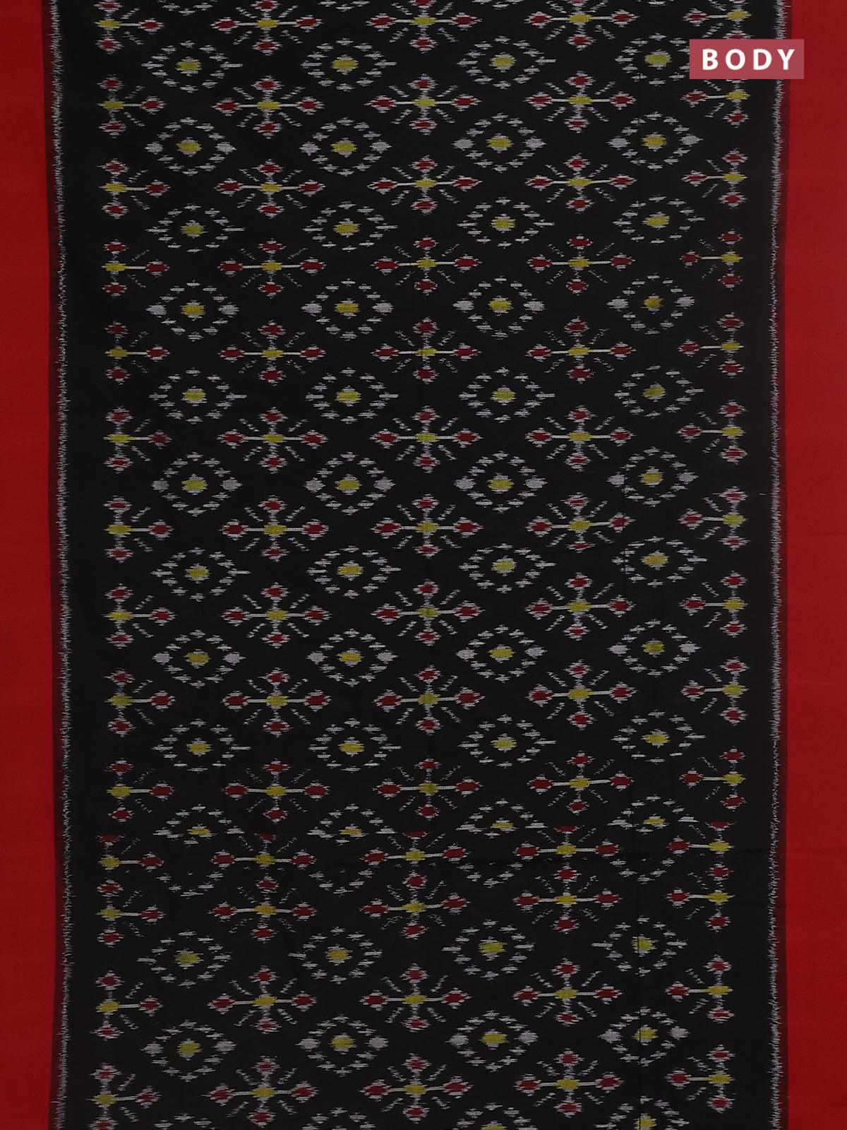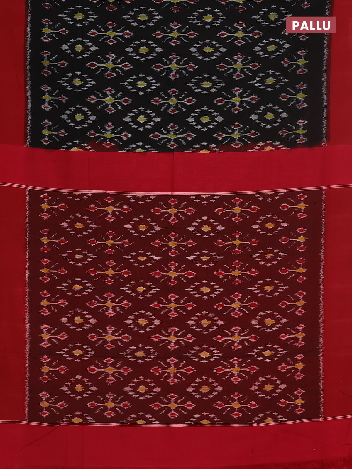 Ikat cotton saree black and red with allover ikat weaves and simple border