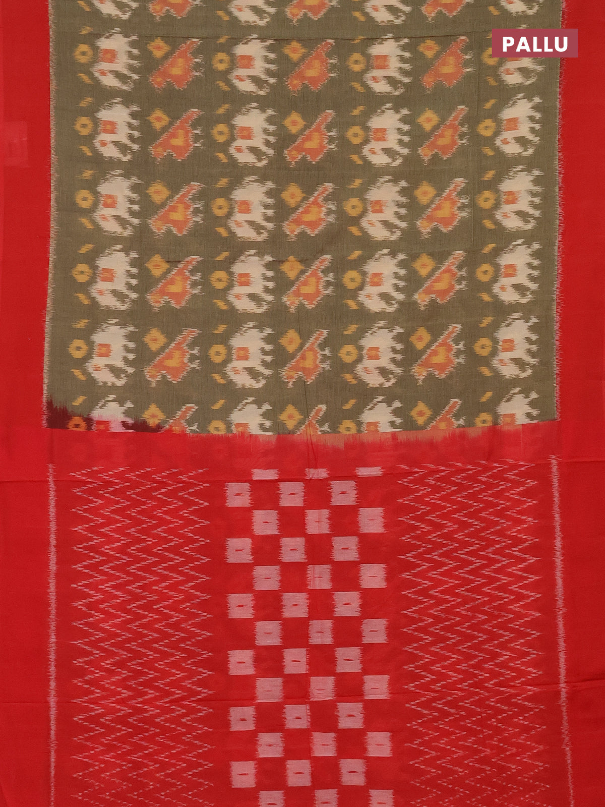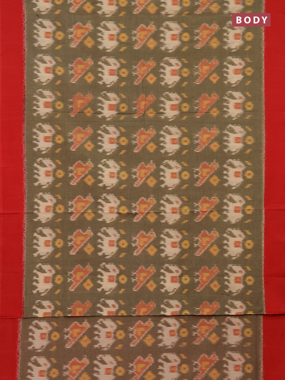 Ikat cotton saree chikku shade and red with allover ikat weaves and simple border