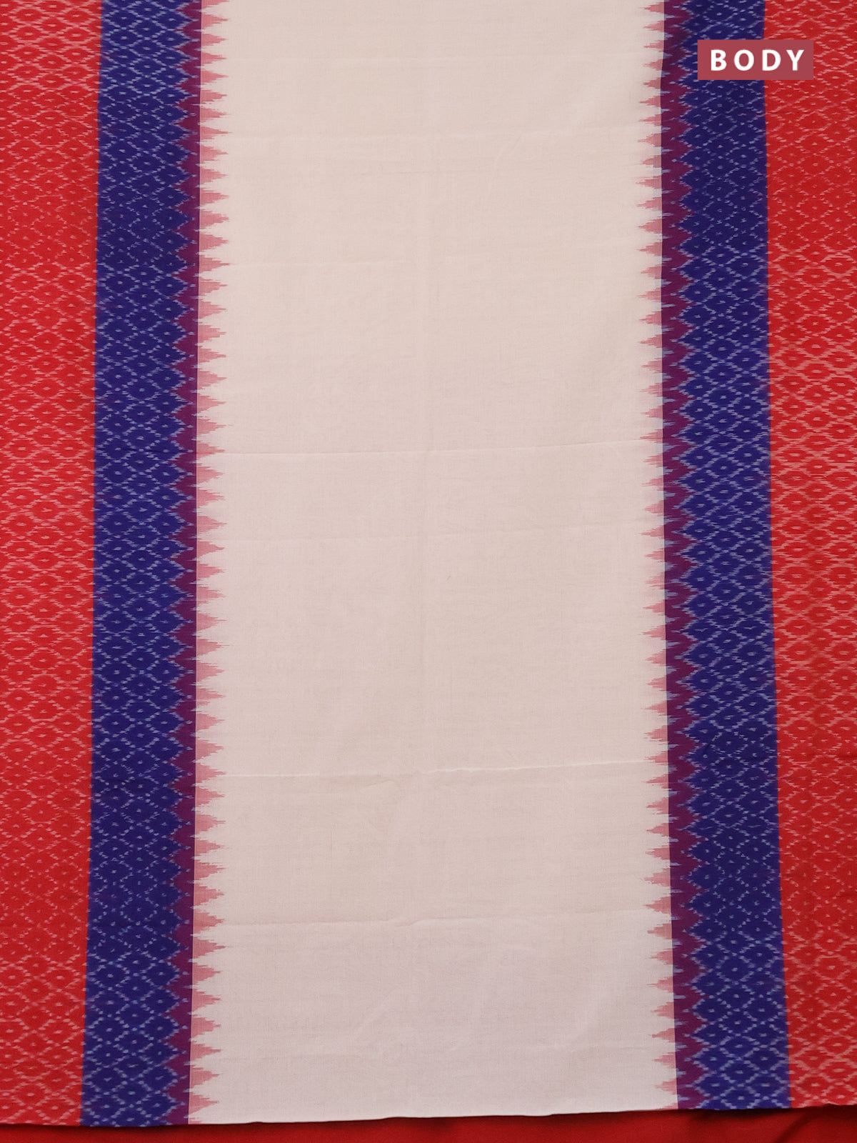 Ikat cotton saree cream and blue red with plain body and long ikat style border