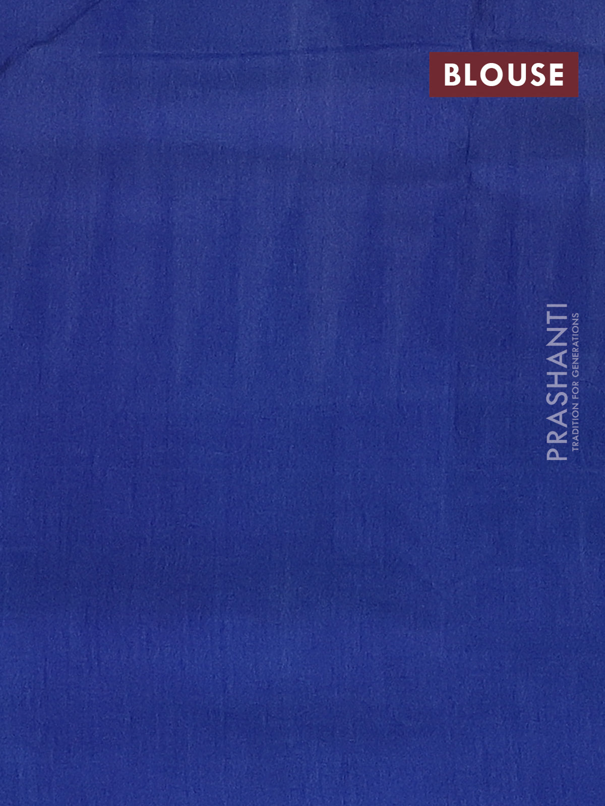 Ikat cotton saree cream and blue with allover ikat butta weaves and temple design ikat style border