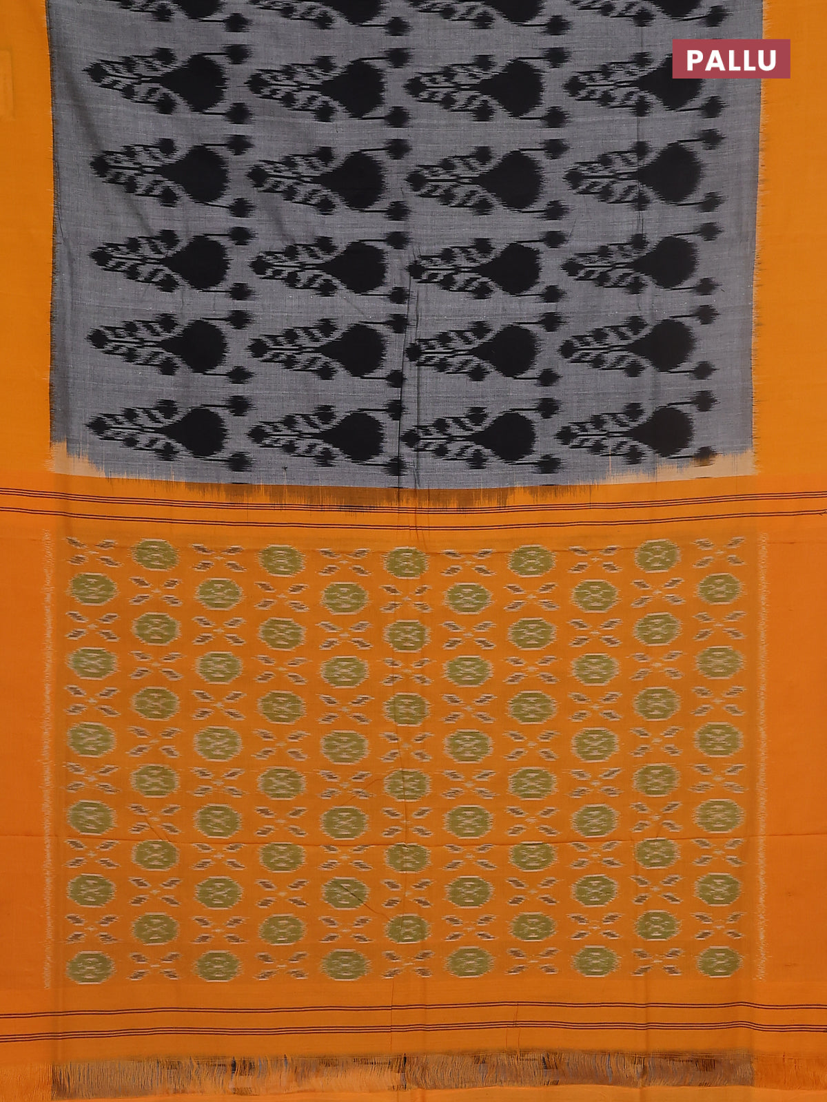 Ikat cotton saree grey and mustard yellow with allover ikat butta weaves and simple border