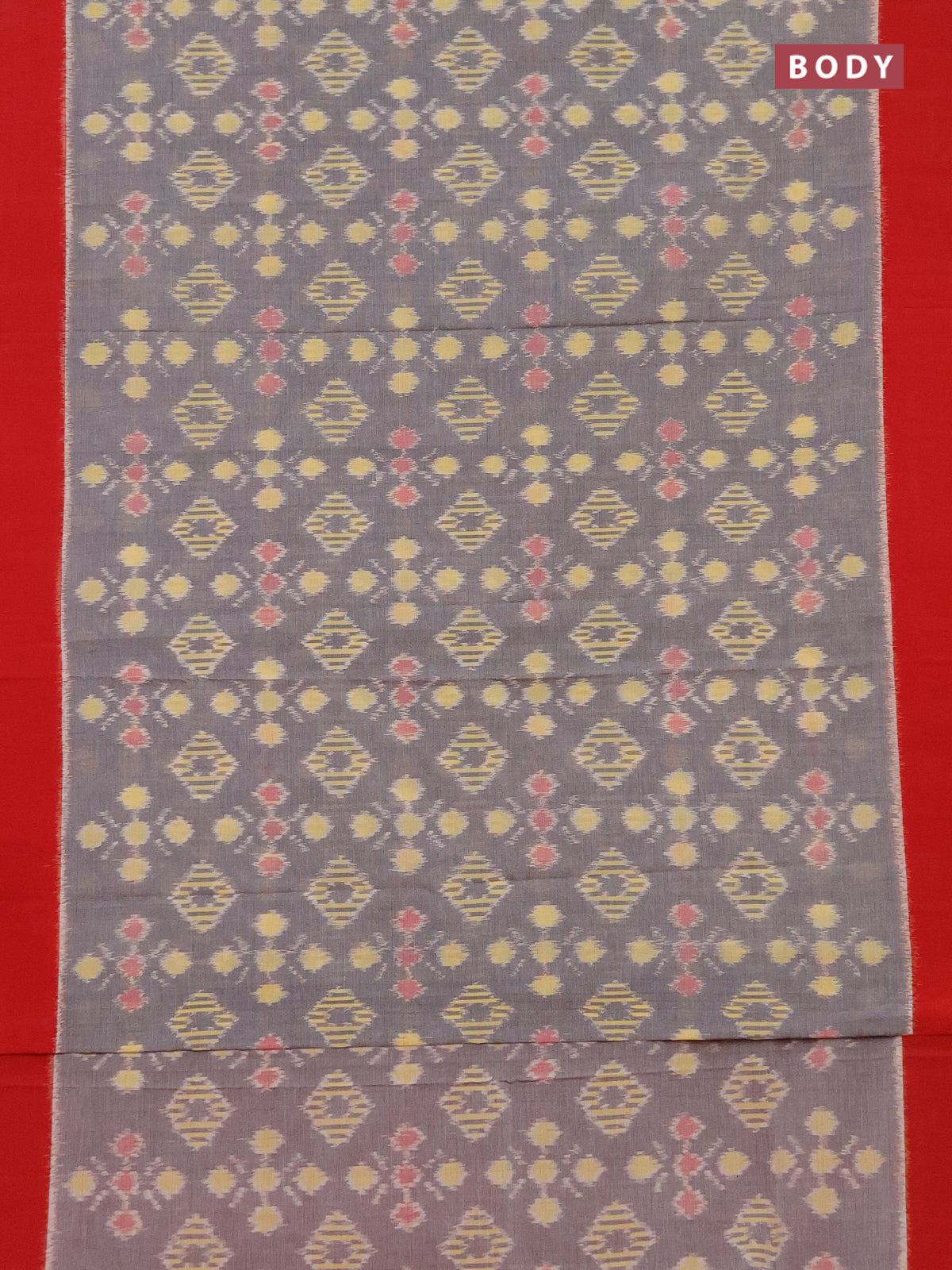 Ikat cotton saree grey and red with allover ikat butta weaves and simple border