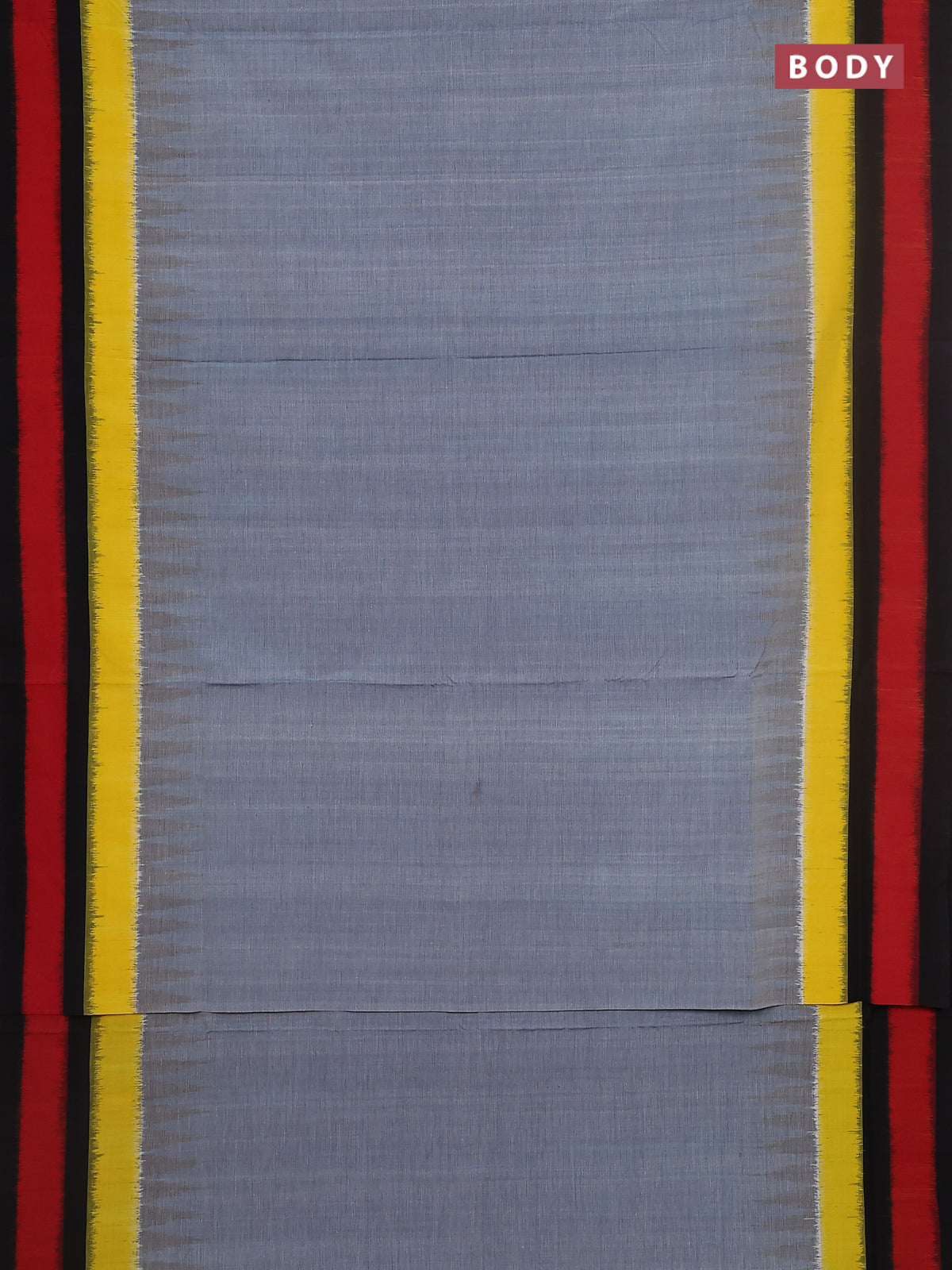 Ikat cotton saree grey and tri colour with plain body and simple border