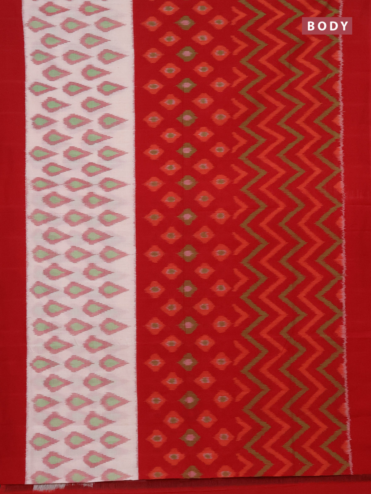 Ikat cotton saree maroon and cream with allover ikat butta weaves and simple border