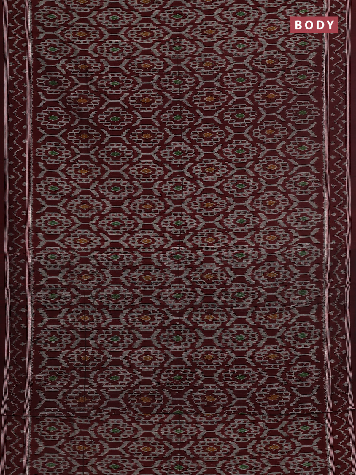 Ikat cotton saree maroon grey with allover ikat weaves and ikat style border