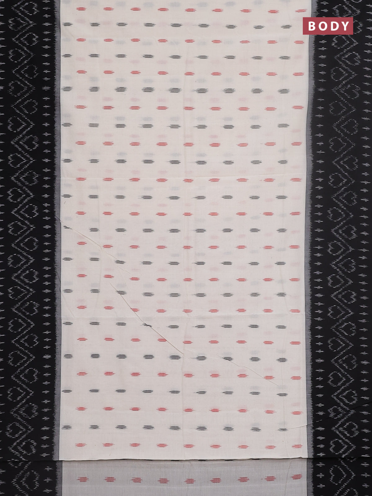 Ikat cotton saree off white and black with allover ikat butta weaves and long ikat style border