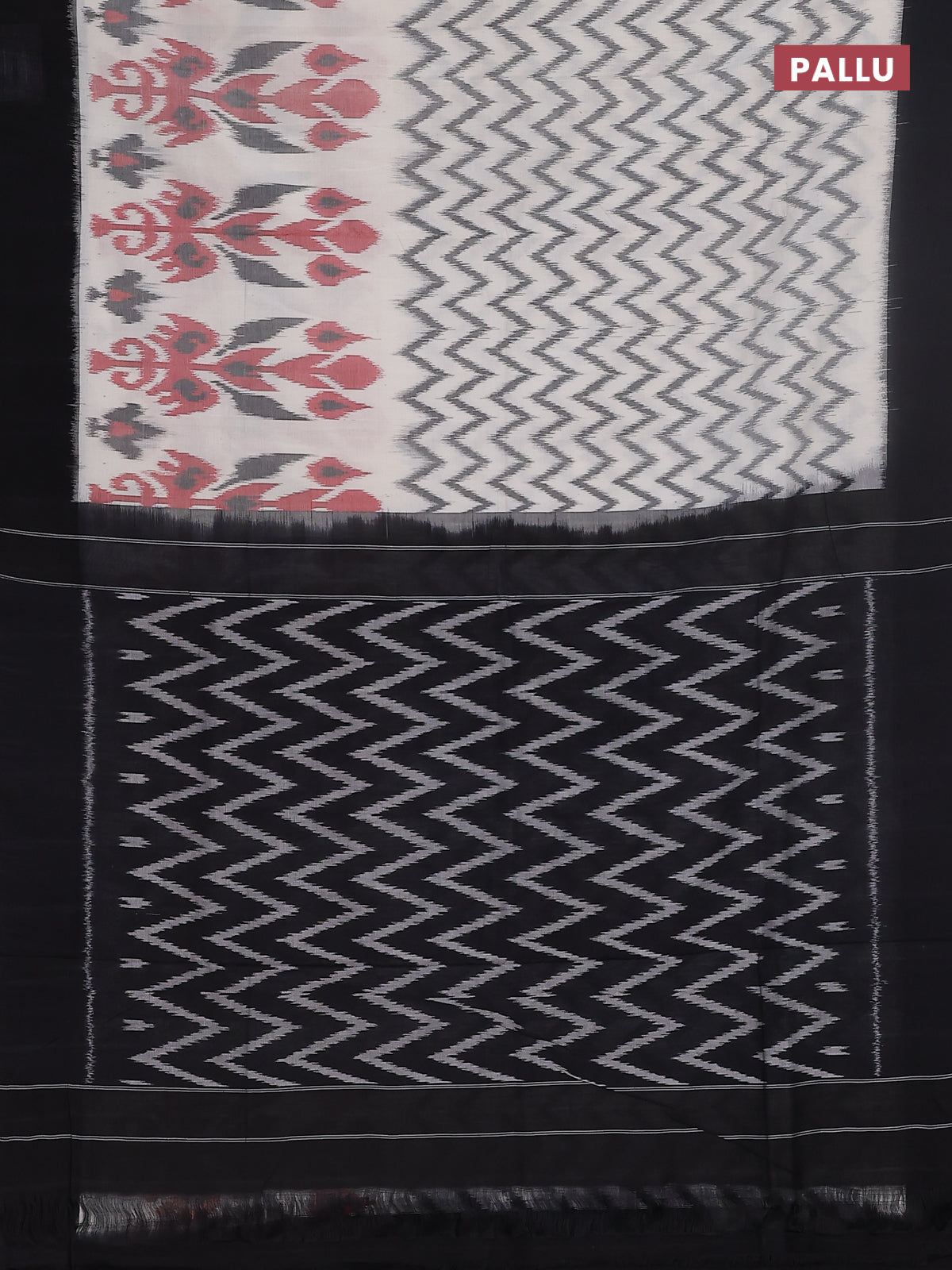 Ikat cotton saree off white and black with allover zig zag ikat weaves and long ikat style border