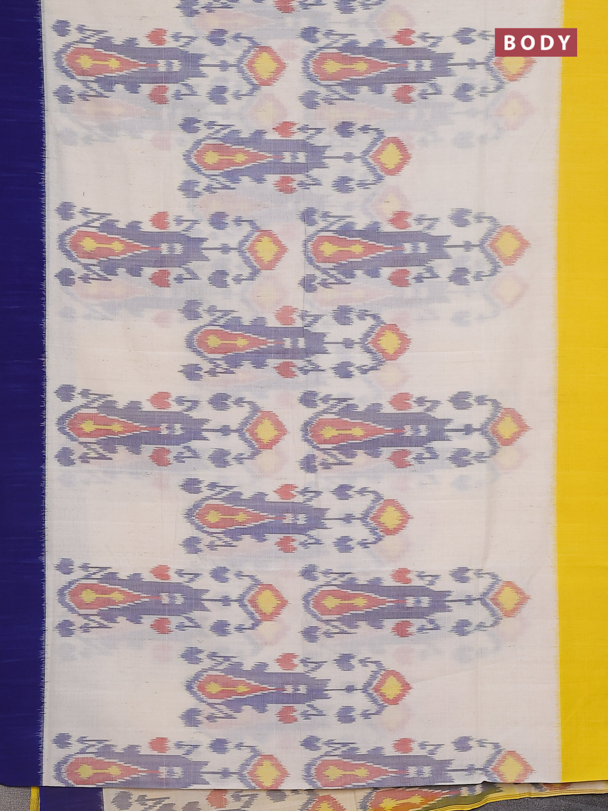 Ikat cotton saree off white with allover ikat weaves and ganga jamuna border
