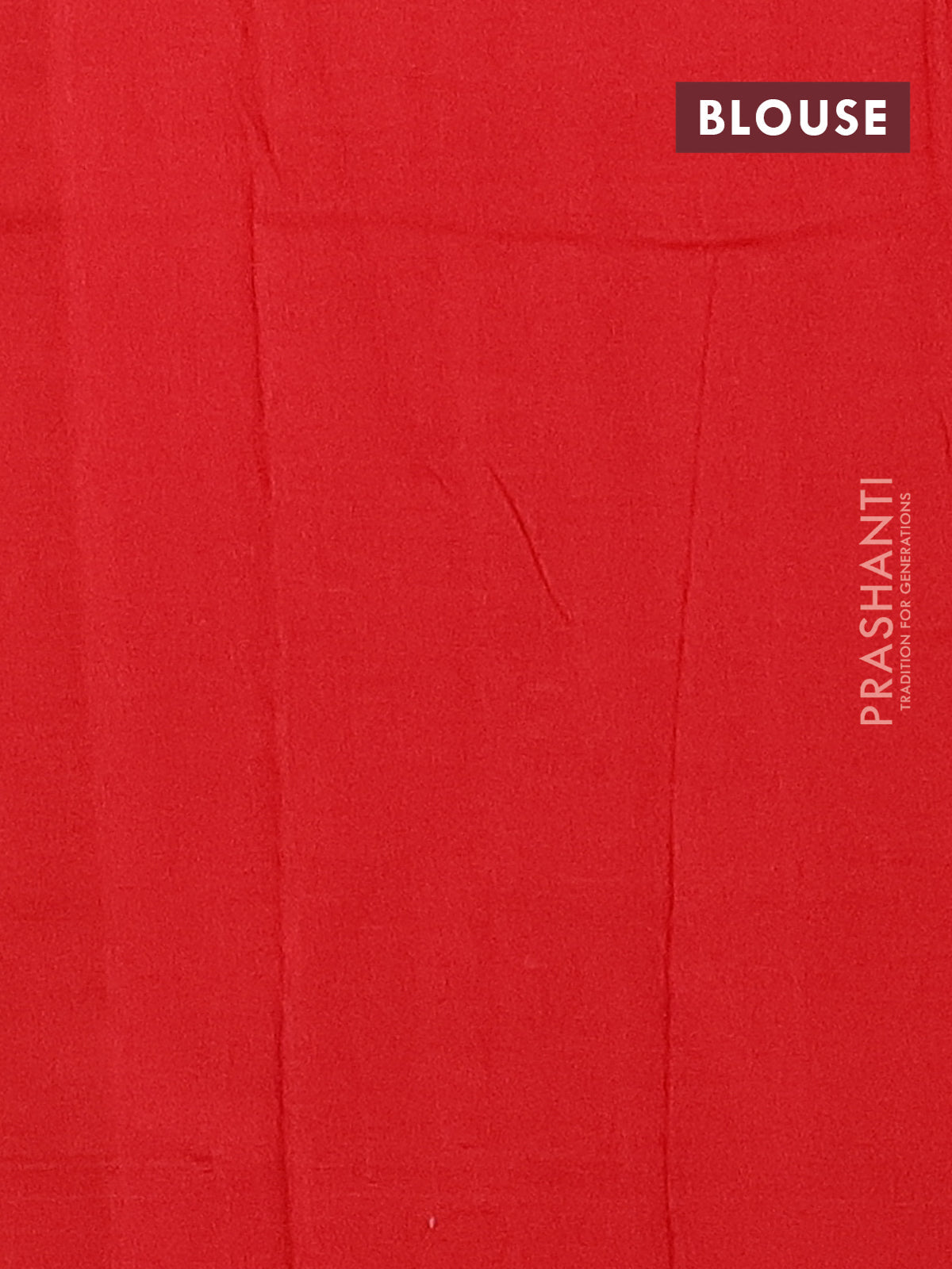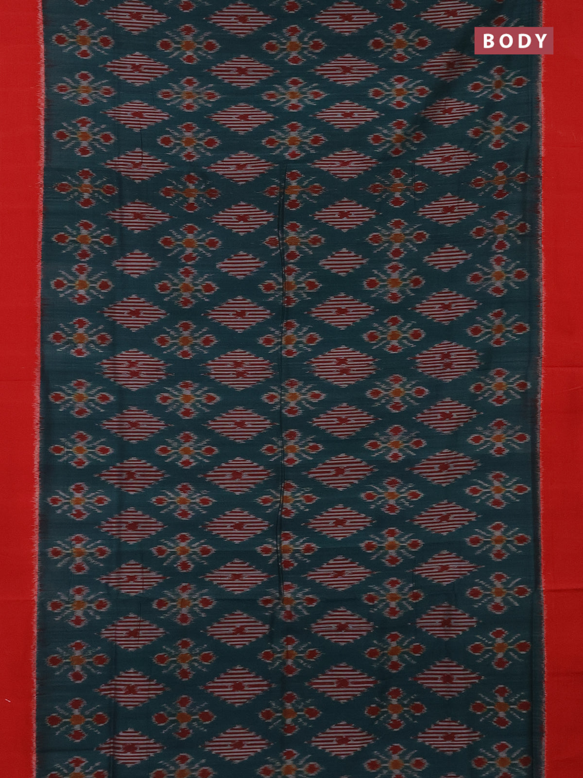 Ikat cotton saree peacock green and red with allover ikat weaves and simple border