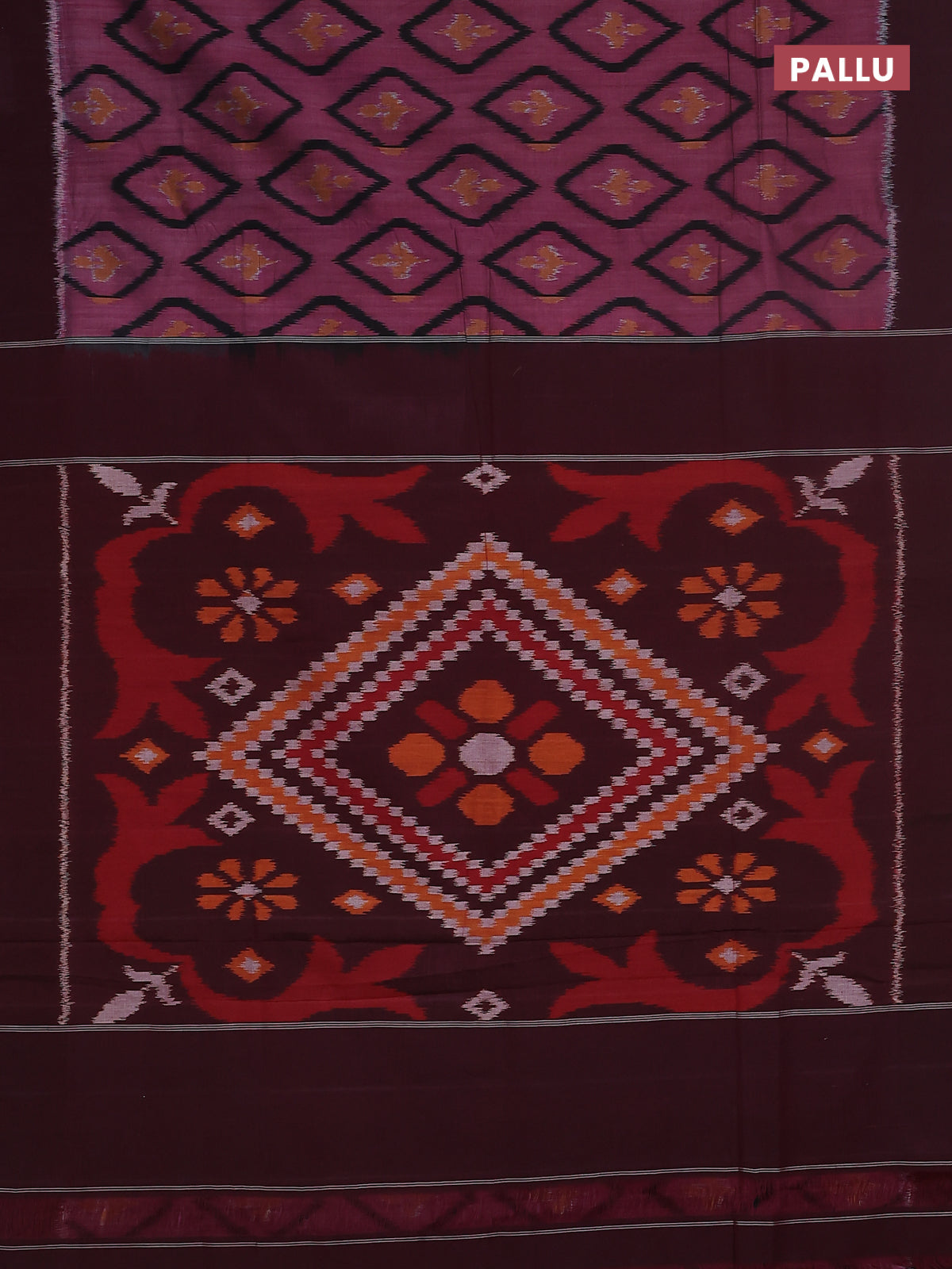 Ikat cotton saree pink shade and wine shade with allover ikat butta weaves and simple border