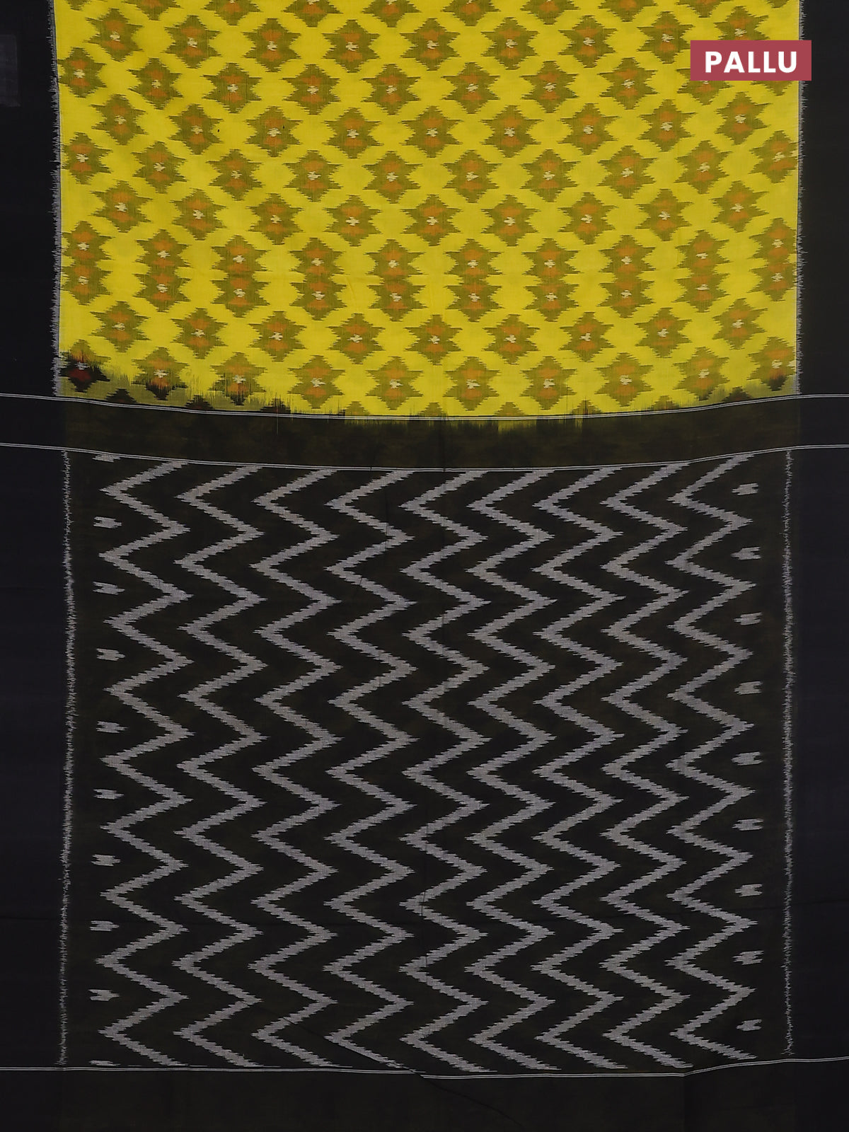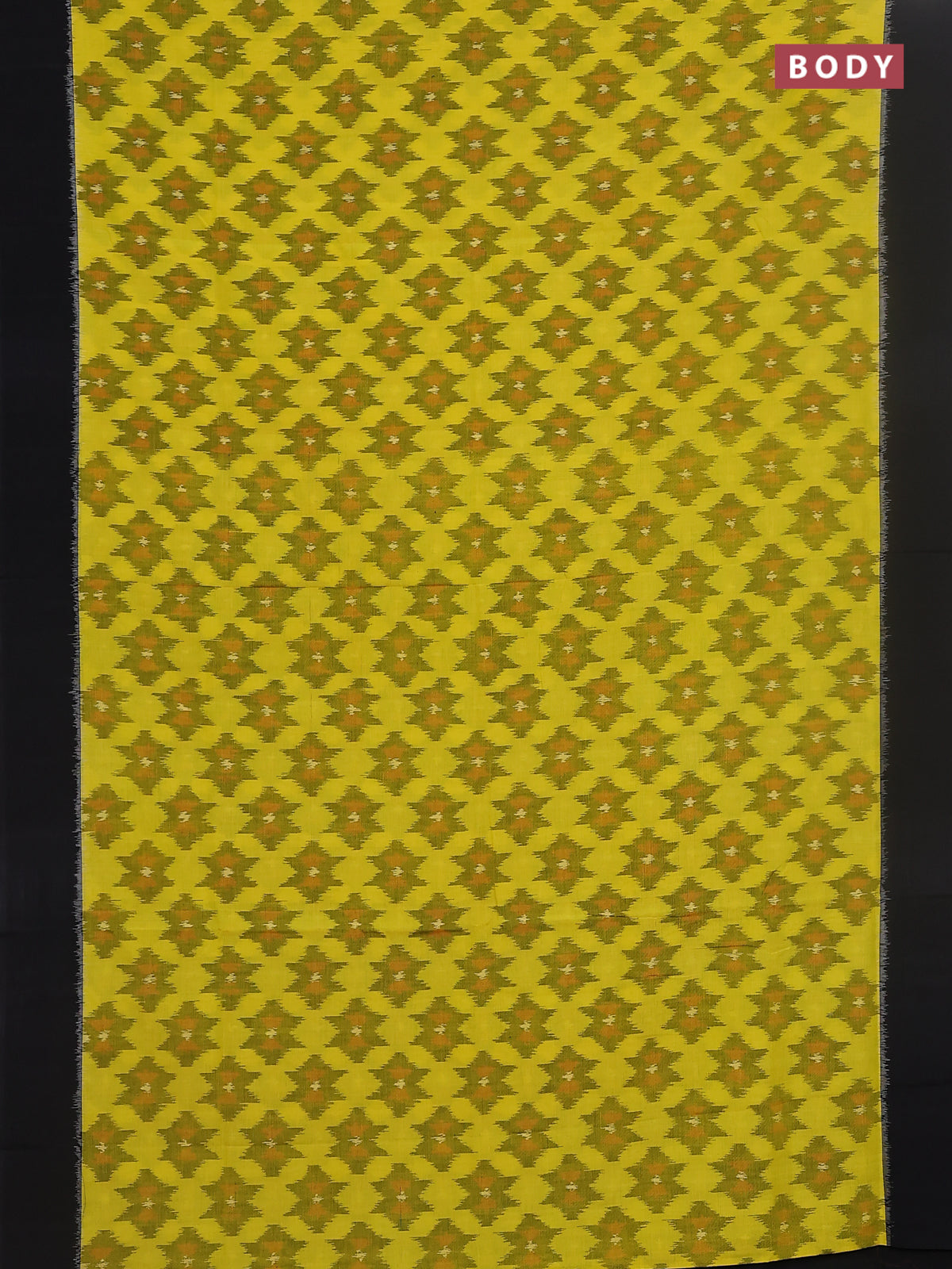 Ikat cotton saree yellow and black with allover ikat butta weaves and simple border