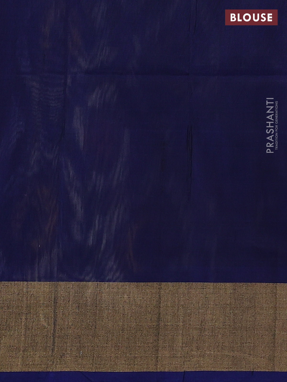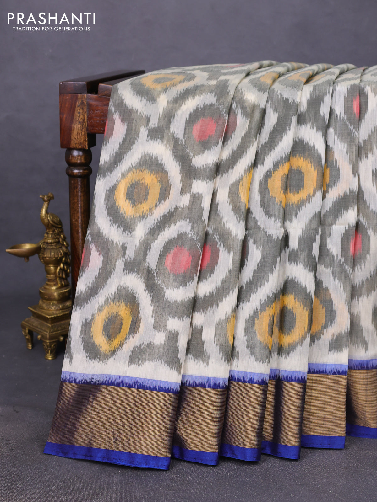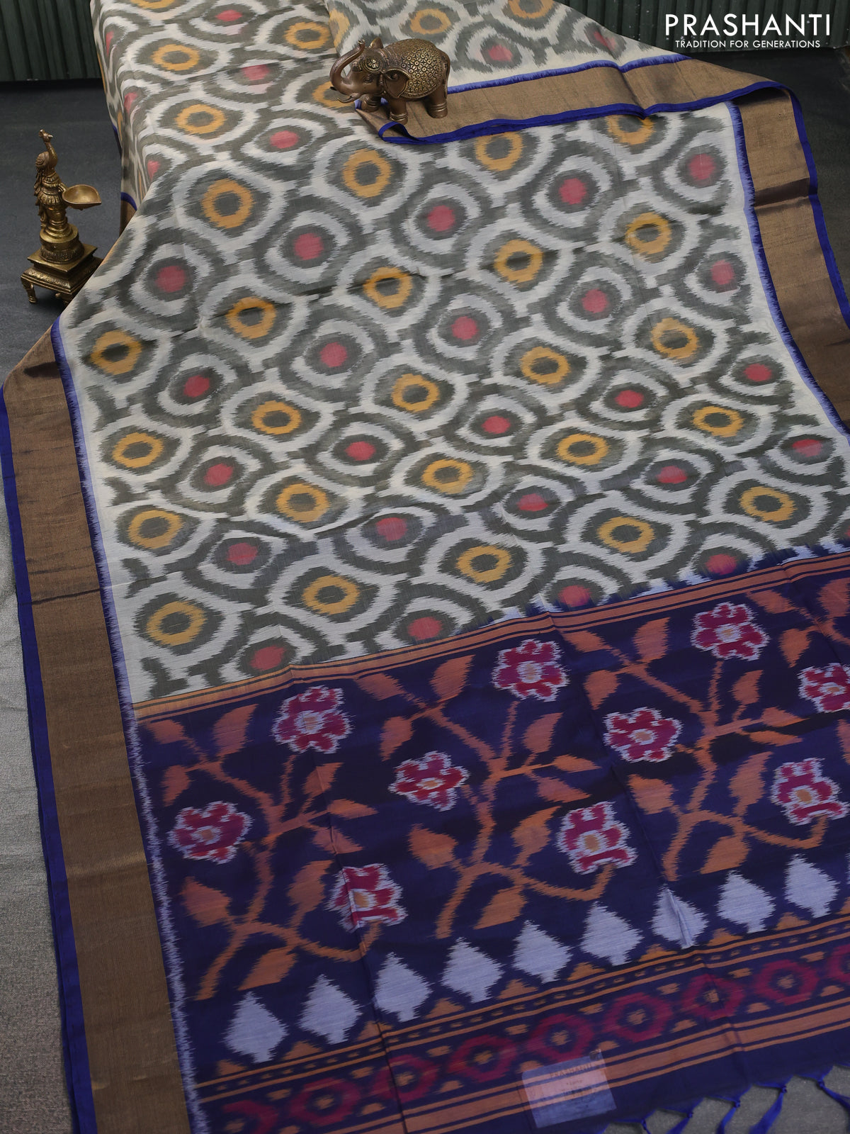 Ikat silk cotton saree grey and blue with allover ikat weaves and zari woven border