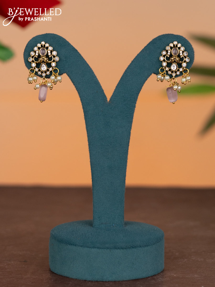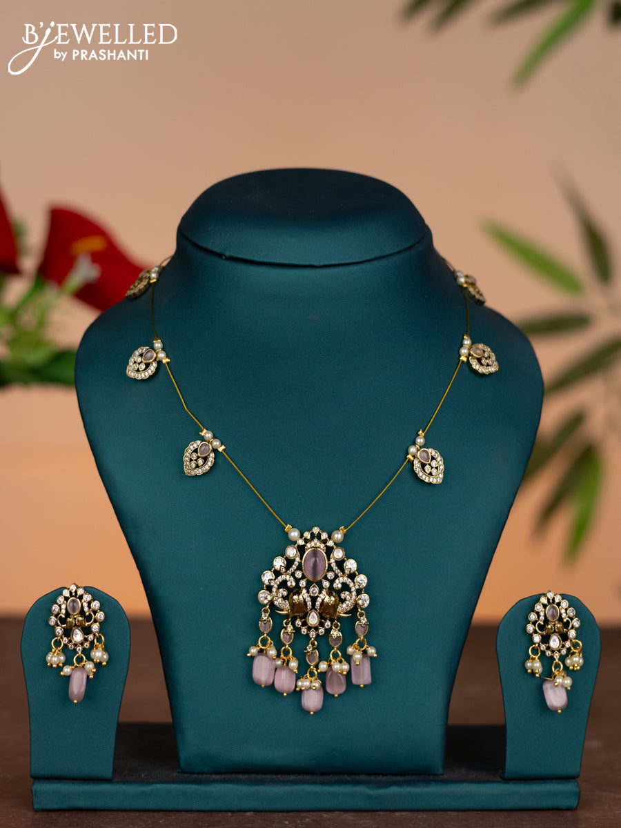 Invisible chain elephant design with baby pink & kundan cz stones and pearl & beads hangings