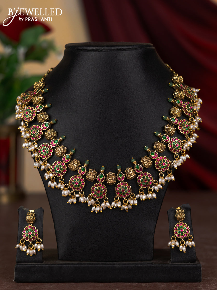 Jadau necklace floral design with jdadu kundan stones and pearl hangings