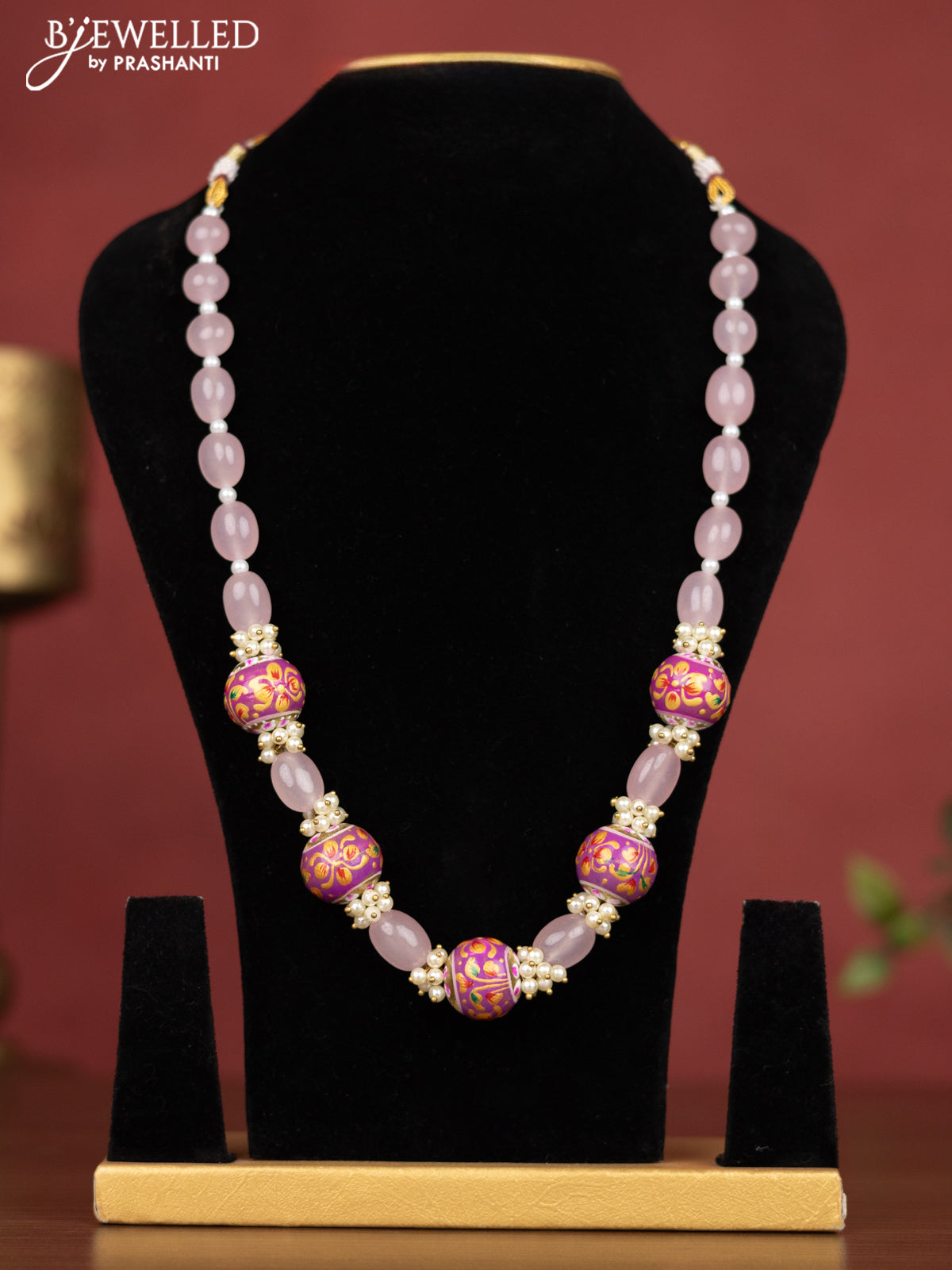 Jaipur beaded multilayer necklace baby pink with minakari balls without earring