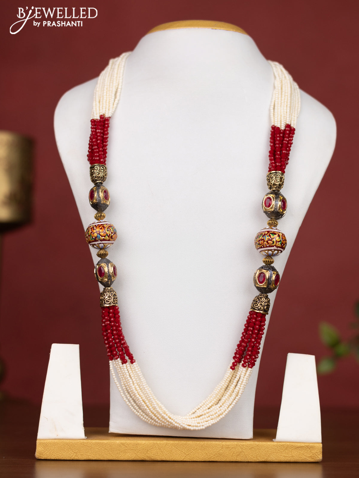 Jaipur beaded multilayer necklace red & white with red stones and without earring