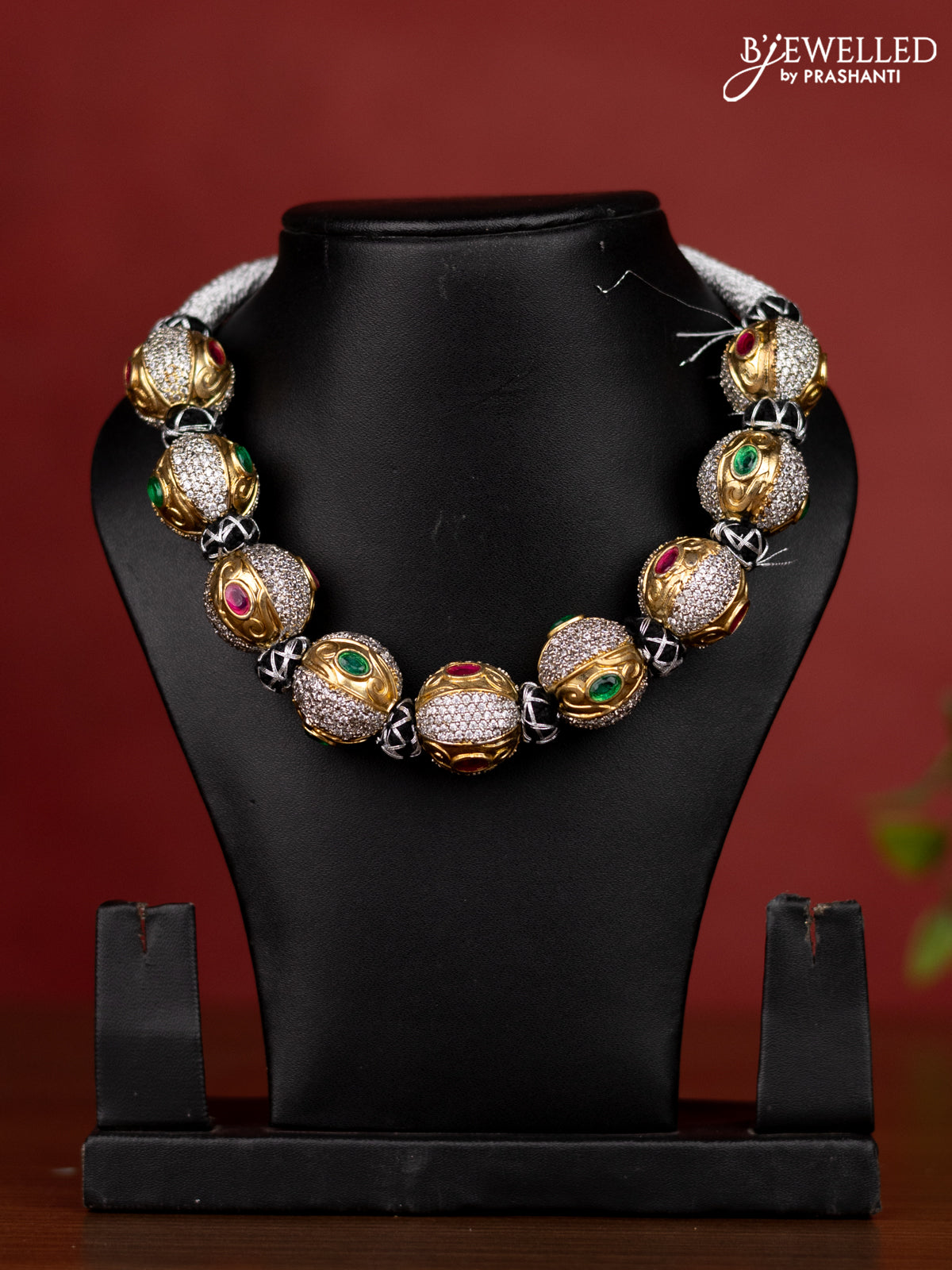 Jaipur beaded necklace with kemp and cz stone without earrinngs